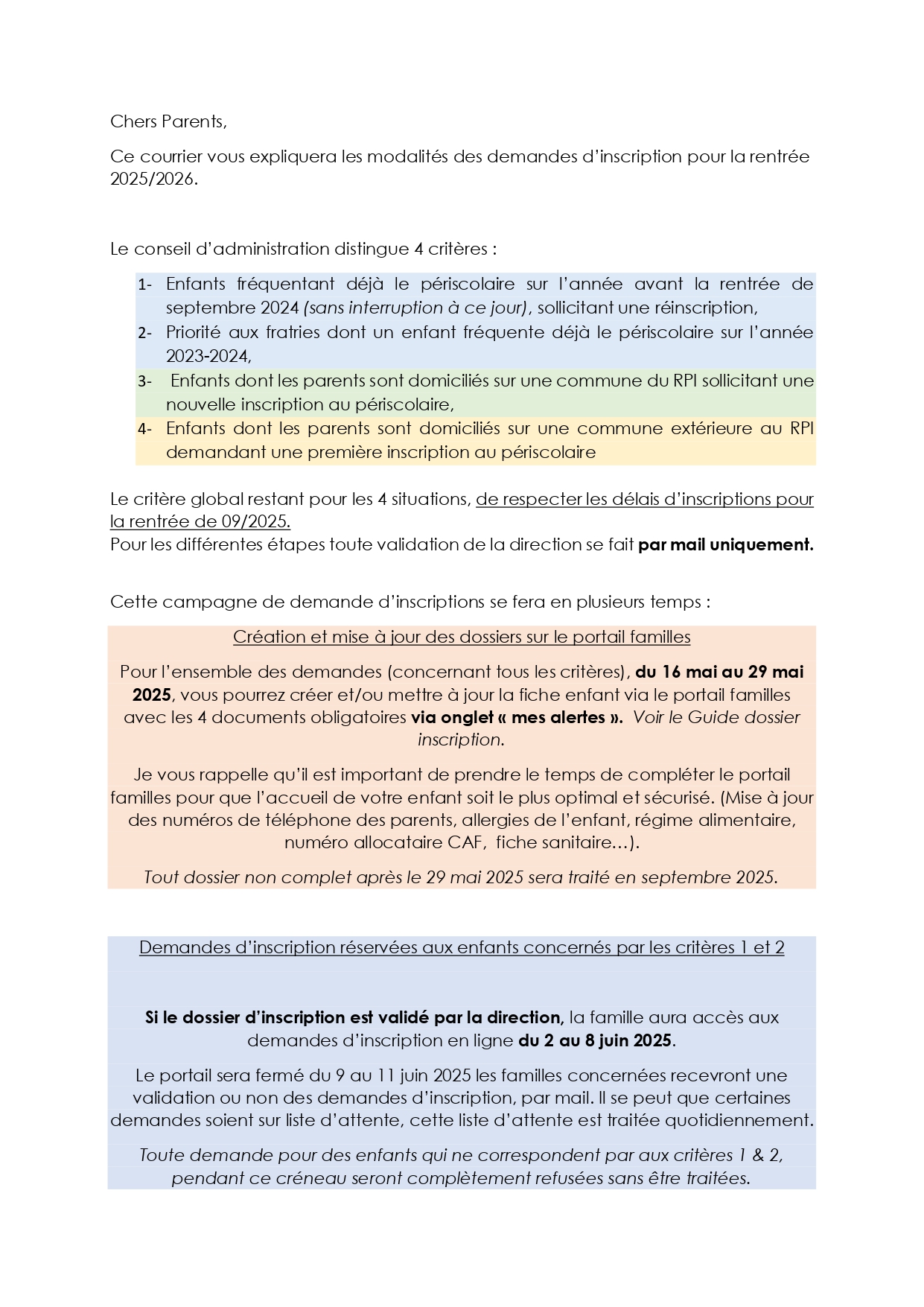 Inscription rentrée 2025-2026