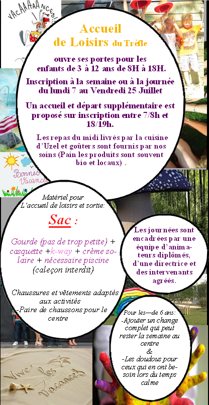 Automne Hiver Printemps été Noël Nous serons ouvert les 3 semaines de Juillet du 06 au 24 2026 JOUR de REPRISE ECOLE: Mardi 1er Septembre 2026
