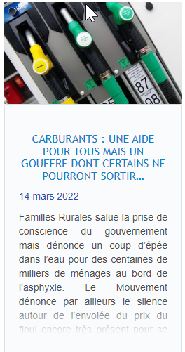 S’agissant du fioul qui a augmenté de 133% en un an, Familles Rurales se félicite d’avoir été entendu par les députés qui ont mis un terme à l’inégalité d’accès à l’aide publique sur l’énergie. Il est à présent indispensable de consacrer des crédits pour en finir avec le chauffage au fioul et parvenir à un zéro reste à charge pour les ménages modestes qui entreprennent des travaux de changement de système de chauffage. Plus généralement, Familles Rurales regrette que des efforts supplémentaires n’aient pas été consentis par le Gouvernement concernant la rénovation énergétique : la meilleure énergie demeure celle que l’on ne consomme pas.