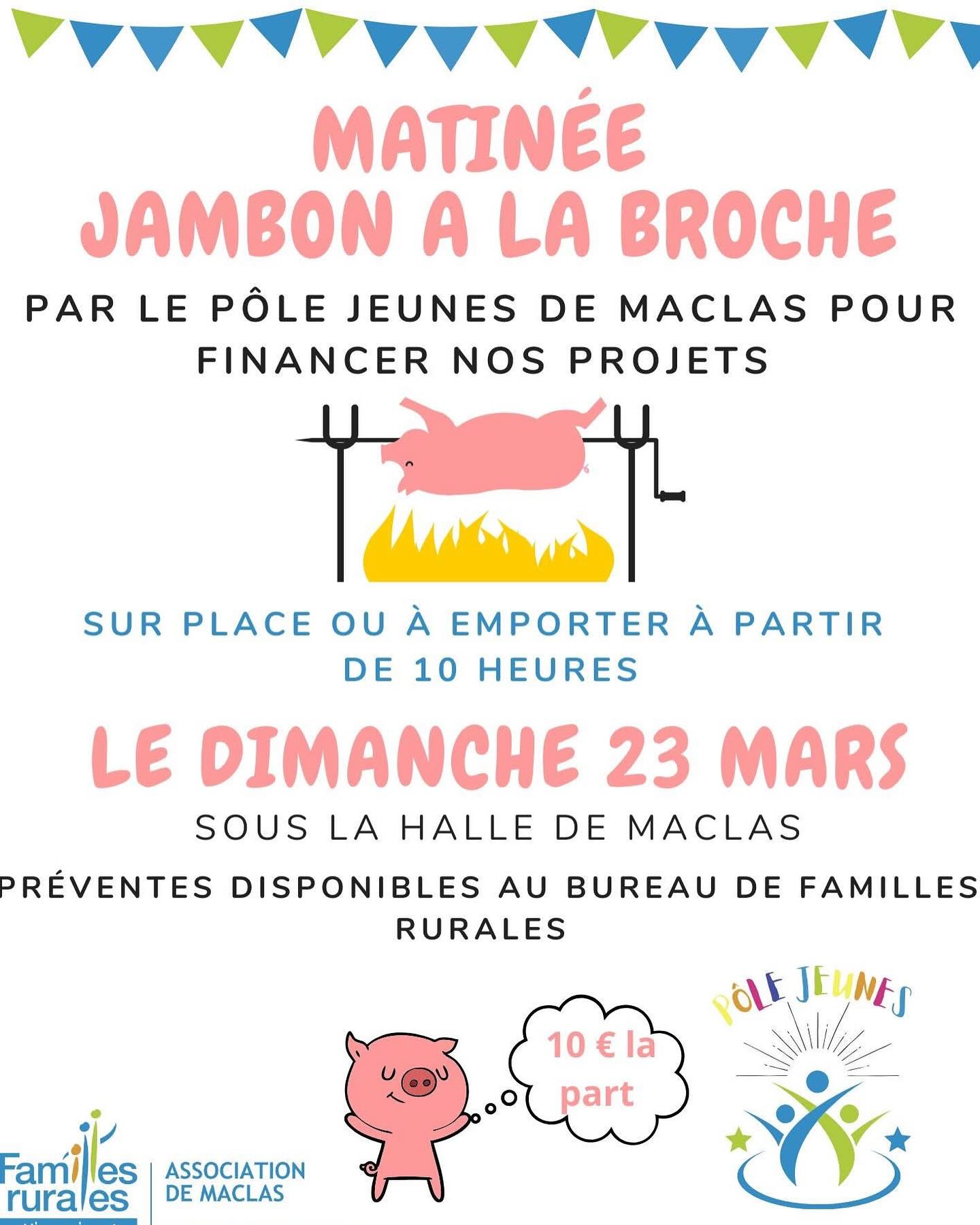 Rendez-vous demain matin sous la halle de Maclas pour un délicieux jambon à la broche