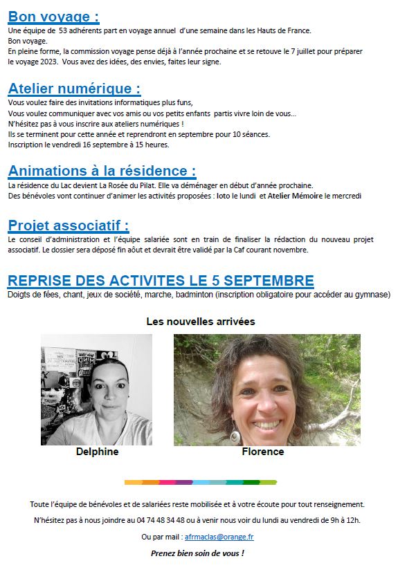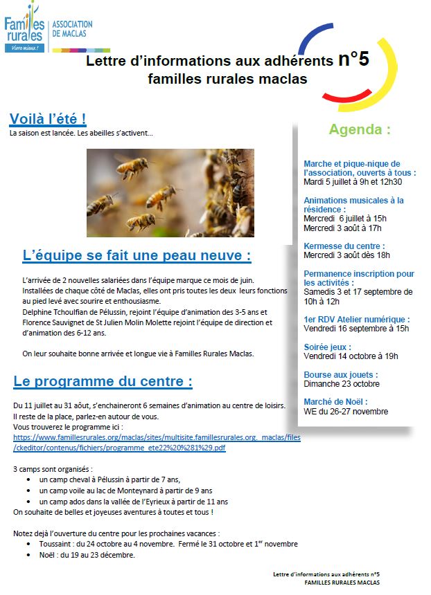 Lettre d'informations aux adhérents
