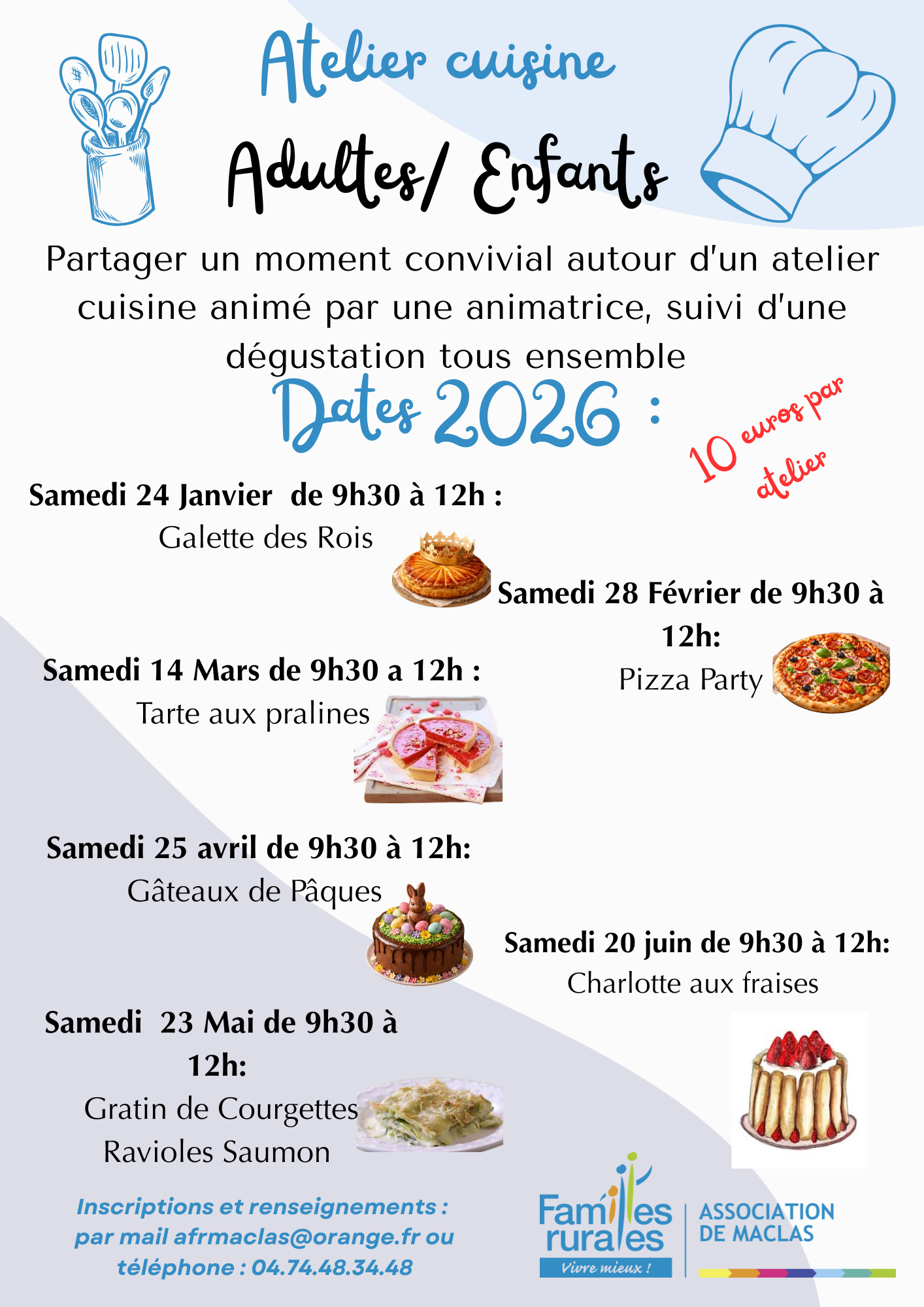 Nos ateliers cuisine reviennent tout au long de lâannĂ©e 2026 âš