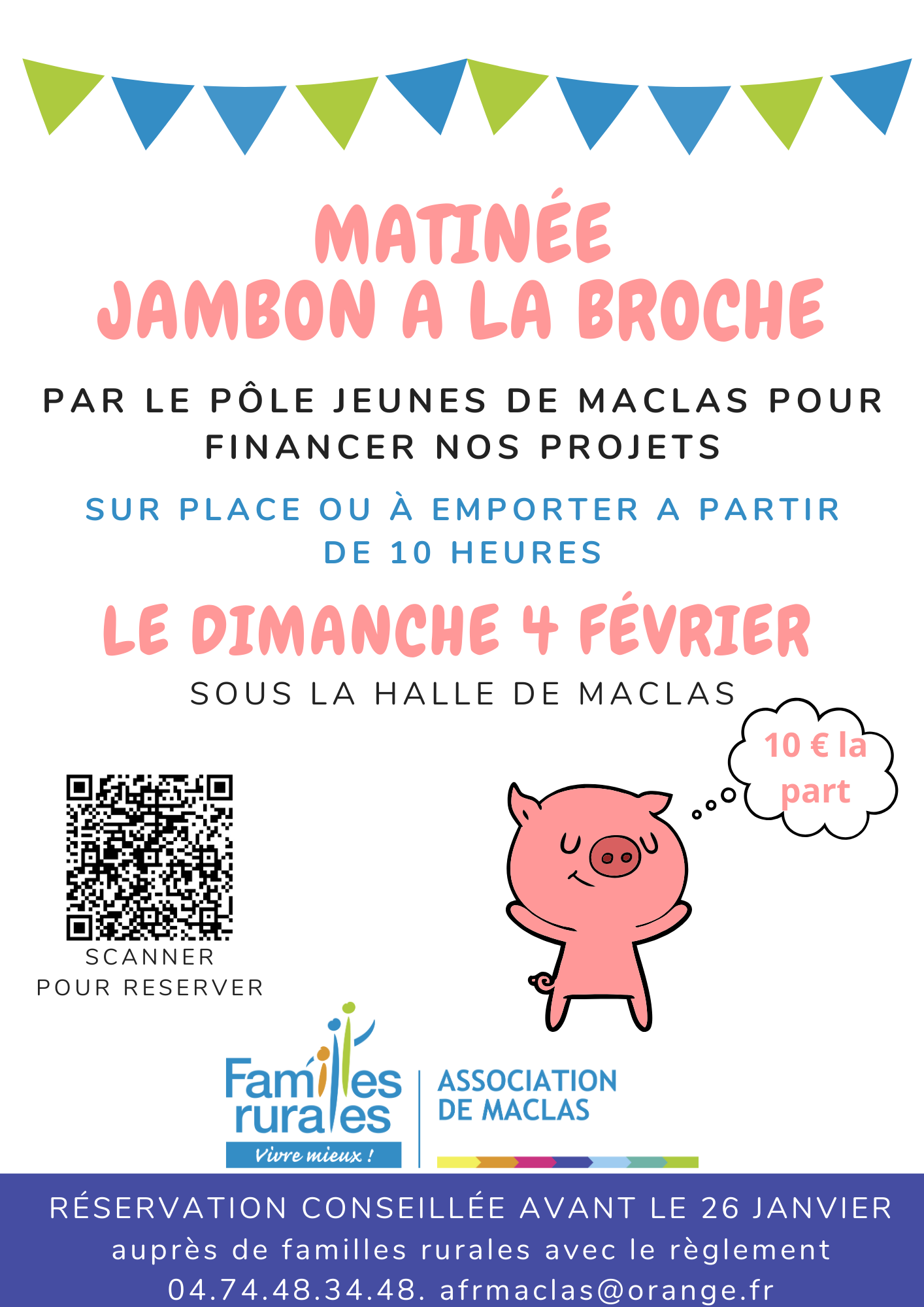 Rendez vous dimanche 4 février sous la halle de Maclas pour une matinée jambon à la broche