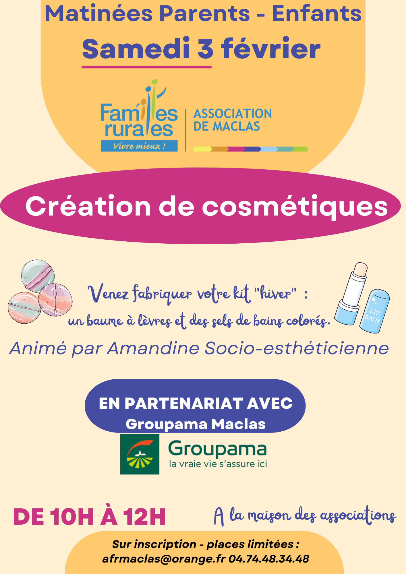 Venez fabriquer votre kit "hiver" : un baume à lèvres et des sels de bains colorés. Animé par Amandine Socio-esthéticienne