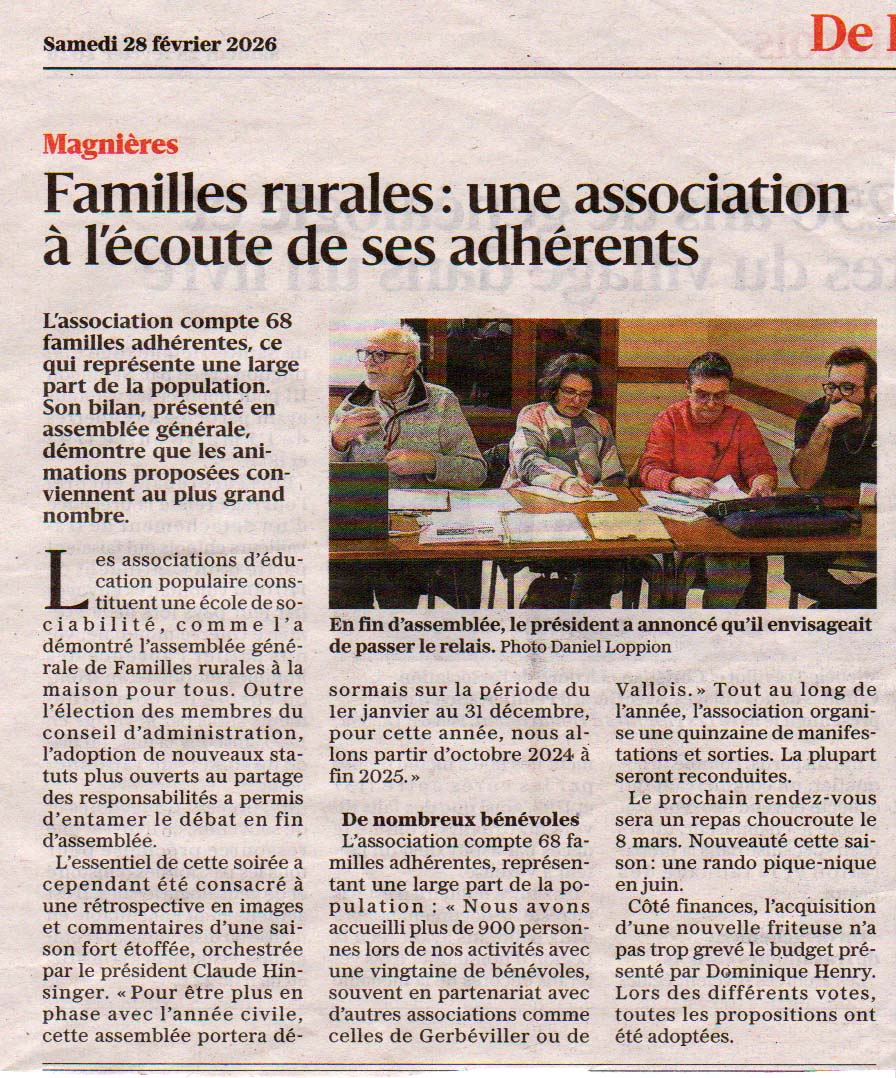 Article de l'Est Républicain sur l'AG du 15 décembre de Familles Rurales de Magnières