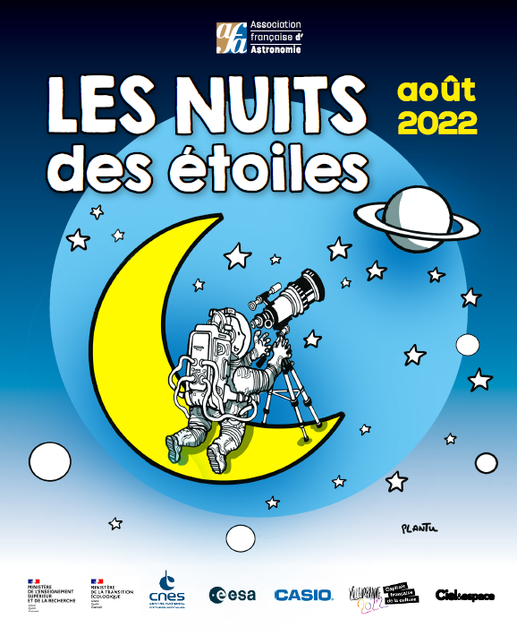 « Nuits des étoiles » est une manifestation nationale, organisée conjointement par l’AFA (Association Française d’Astronomie), le CNES (Centre National d’Études Spatiales), AIRBUS, la revue de l’AFA « Ciel & espace » et enfin les ministères de la transition écologique et solidaire, et de l’enseignement supérieur, de la recherche et de l’innovation.