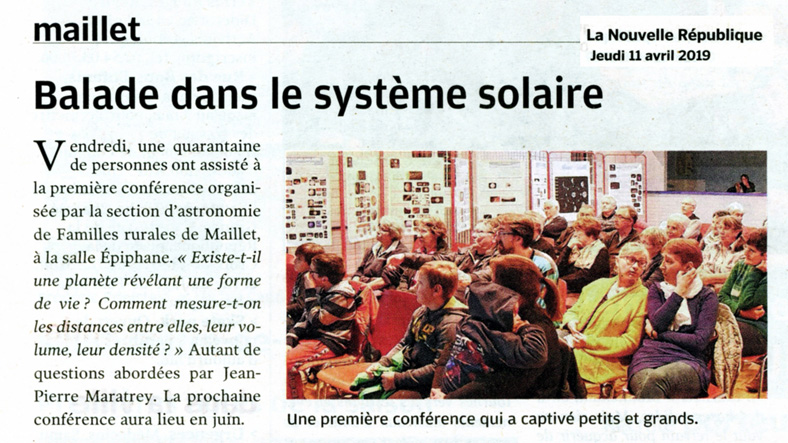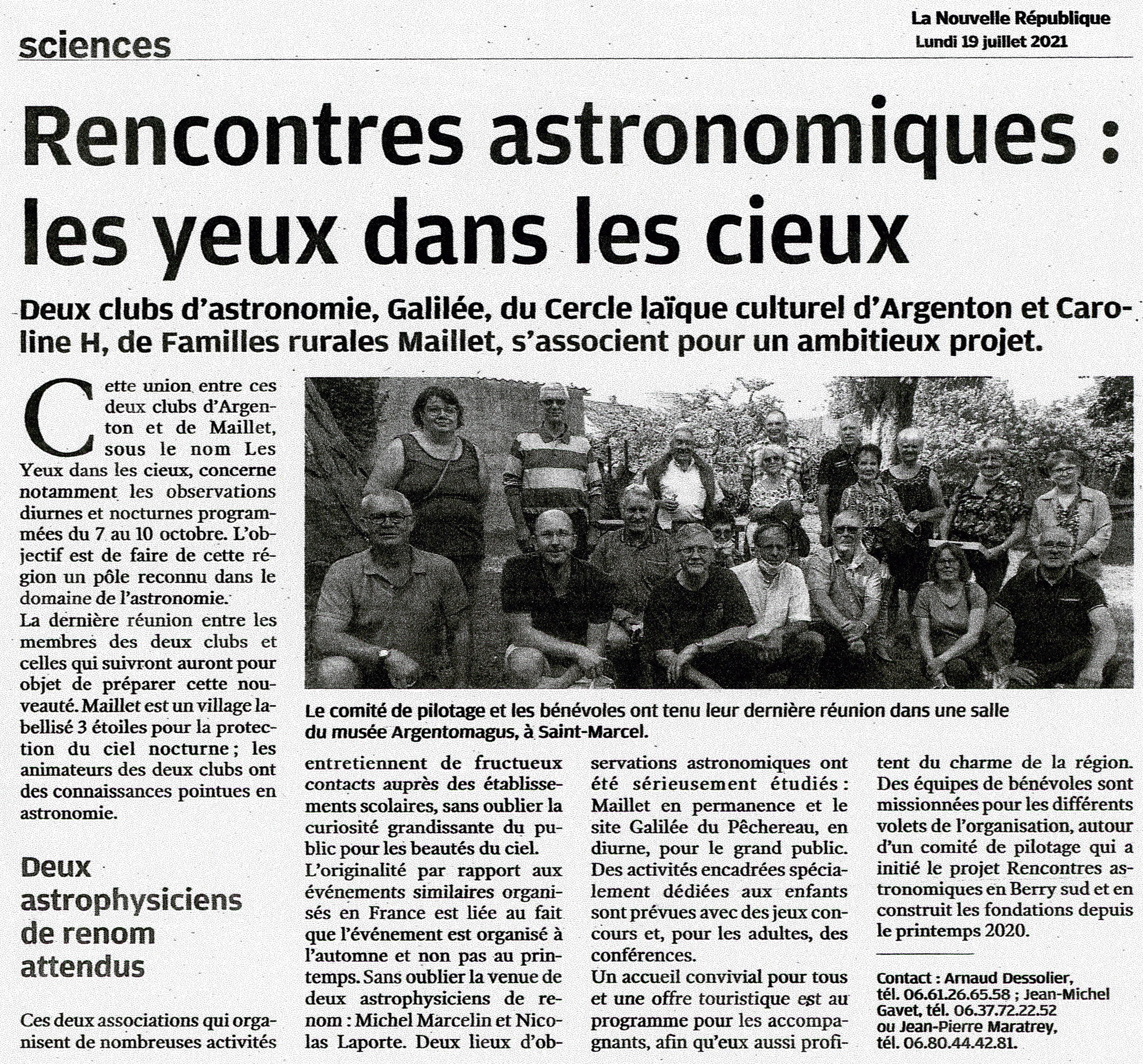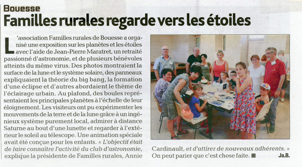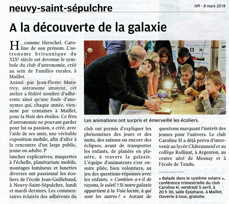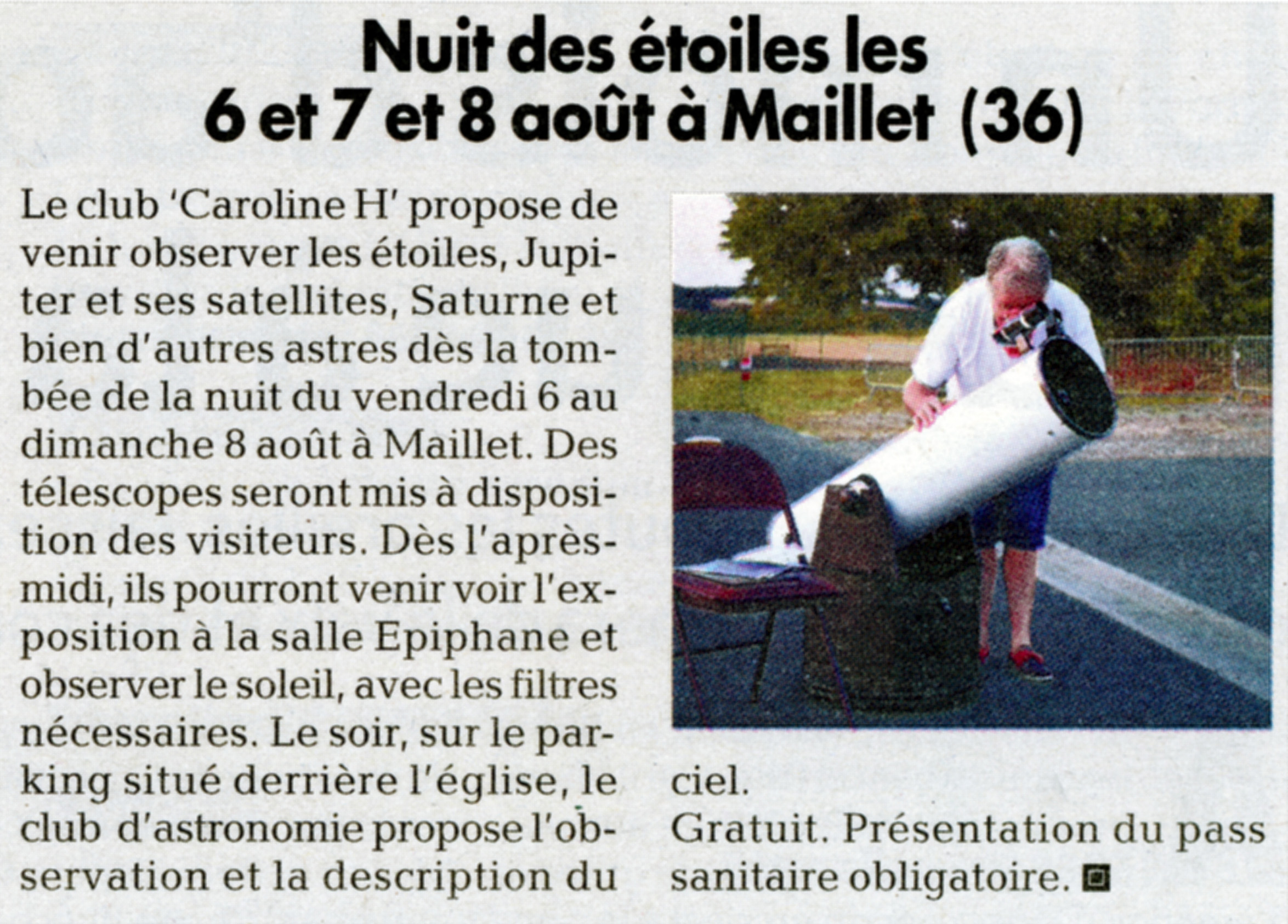 La presse à mentionné à de multiples reprises, les différents aspects de notre activité "Astronomie" : Le club Caroline H.