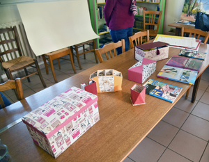 Démarrée pendant un confinement du Covid 19, cette activité permet la confection de boîtes, rangements et objets en tous genres.
