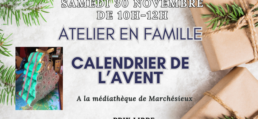Le samedi 30 novembre de 10h à 12h venaient confectionner un calendrier de l’avent afin d’attendre Noël à la médiathèque de Marchésieux. Le prix est libre vous donnez ce que vous pouvez ou ce que vous voulez.
