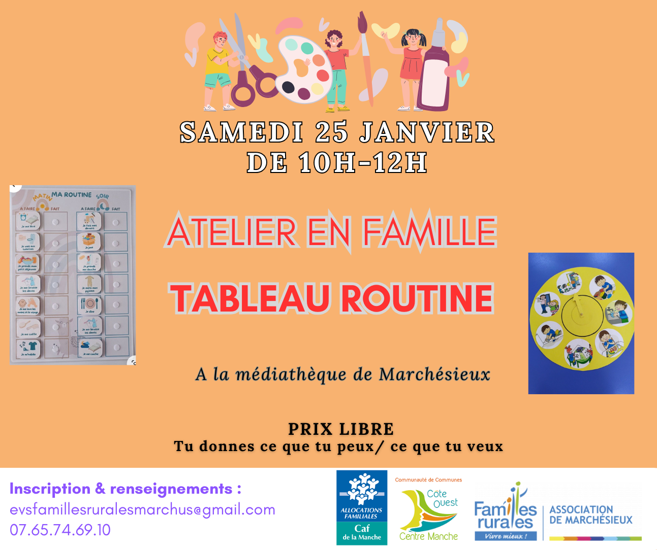 Familles Rurales de Marchésieux organise un atelier en famille pour confectionner et établir une routine du matin ou du soir pour vos enfants.
