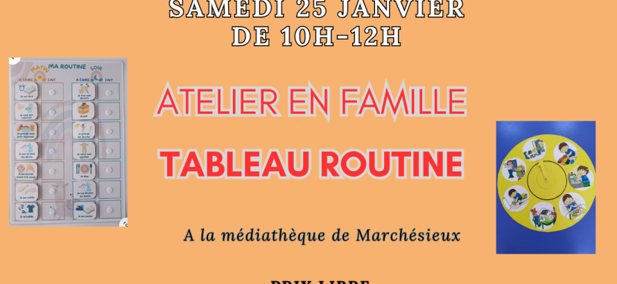 Le samedi 25 janvier de 10h à 12h venaient confectionner et établir une routine du matin ou du soir pour vos enfants tout en les intégrant dedans de façon ludique ! Rendez-vous a la médiathèque de Marchésieux. Prix libre.