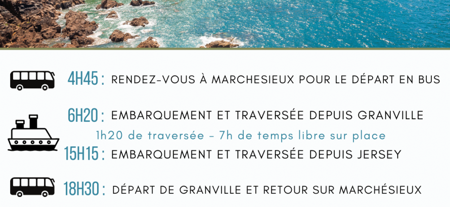 - 14h15 heure locale - embarquement et traversée depuis Jersey