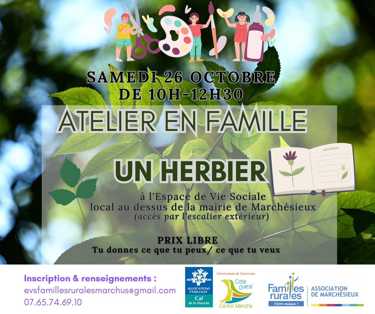 Familles Rurales de Marchésieux organise un atelier créatifs en famille le samedi 26 octobre de 10h à 12h.