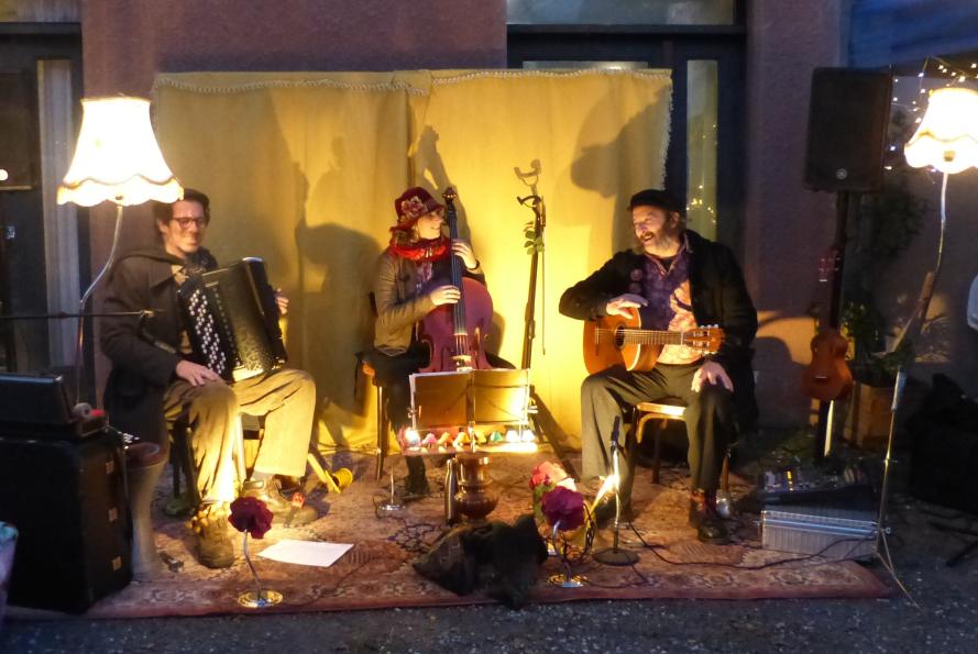 La matinée s’est poursuivie avec un spectacle poétique et aérien, suspendu dans les arbres, mêlant arts du cirque et rêverie. Cette performance unique, proposée par le collectif Rabalaïre de Salles-la-Source, a su captiver l’attention par sa grâce et sa créativité.