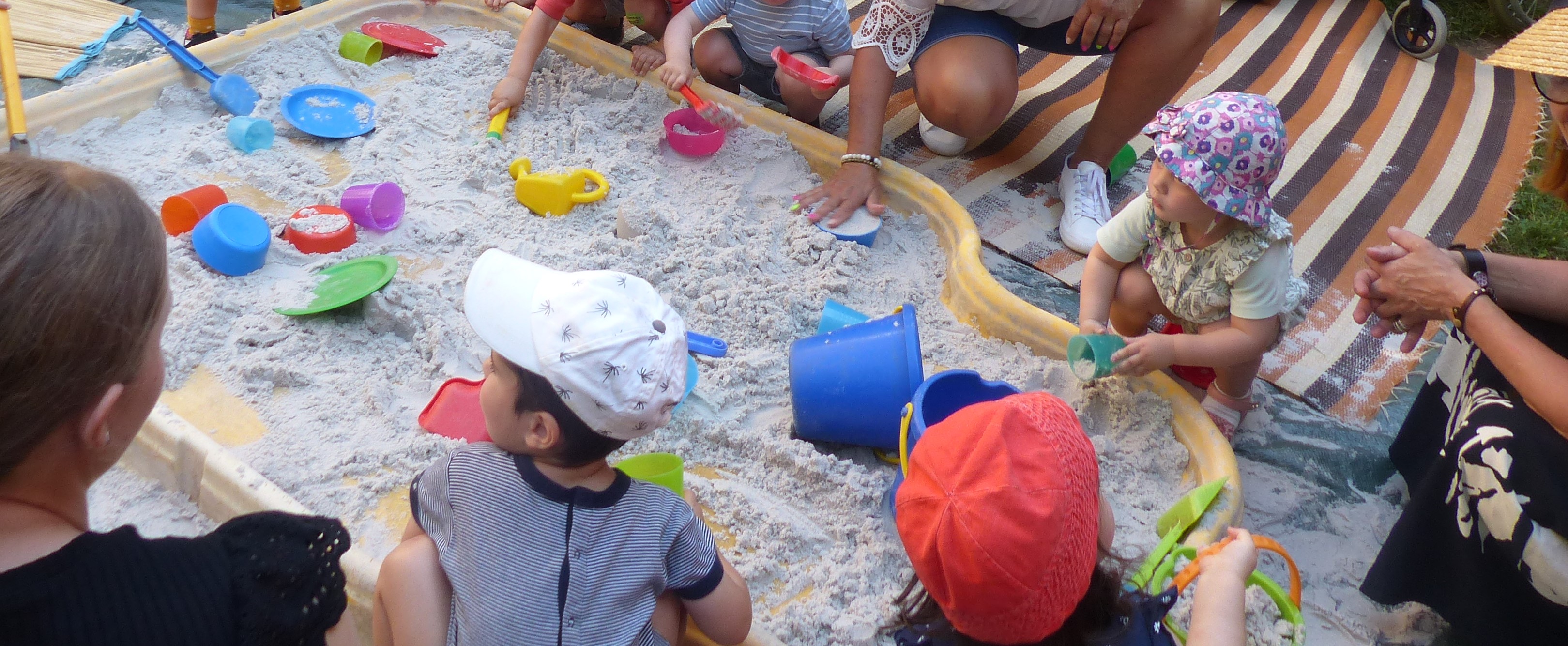 Pendant ce temps, le jardin de la crèche s’est transformé en bord de mer avec des grands bacs à sable pour jouer, creuser, construire… « Vamos a la playa ! ».