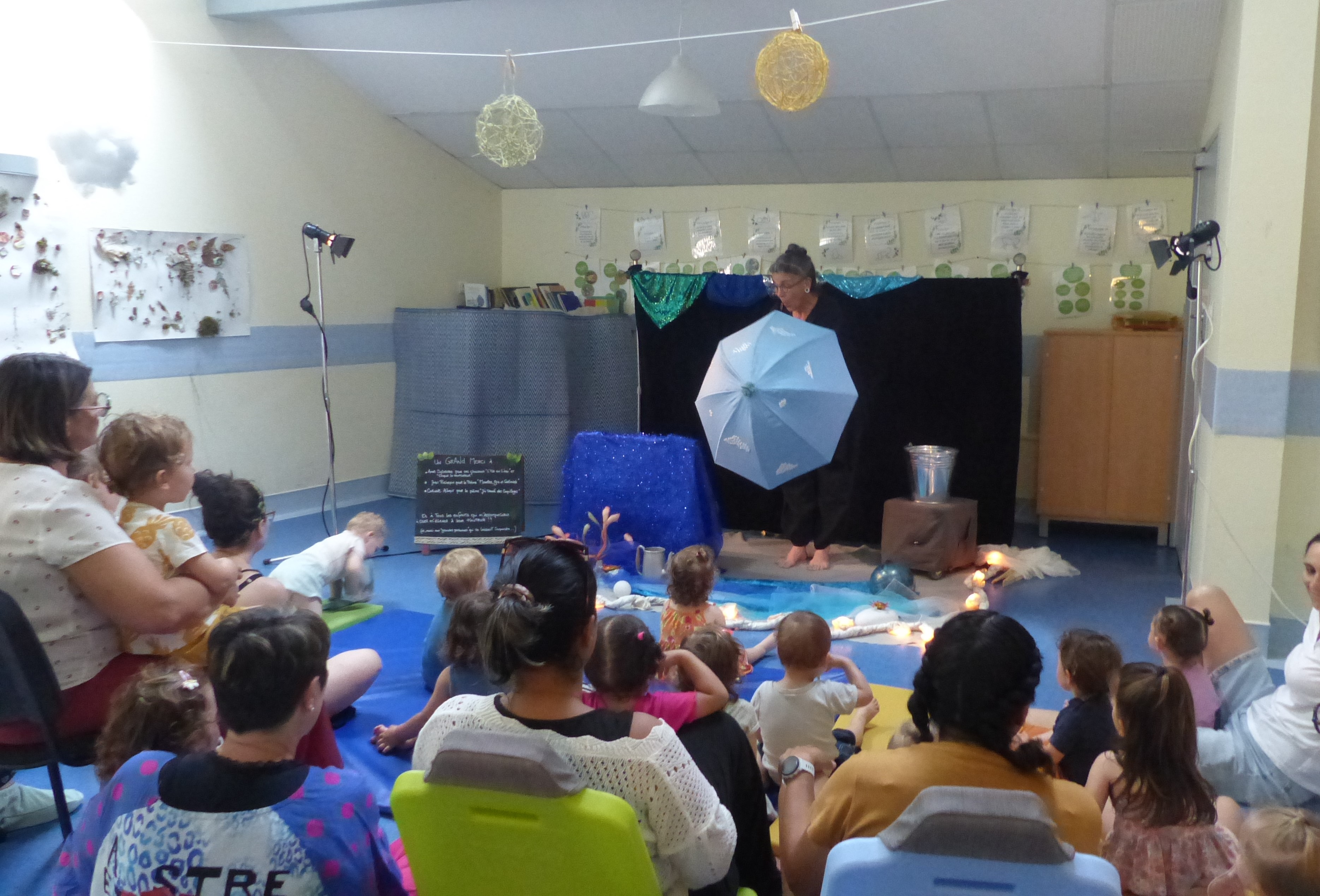 Les enfants, familles et assistantes maternelles ont profité de deux représentations du spectacle "L'été est là" par Sandrine Lucas, un moment poétique et joyeux, parfait pour lancer la journée !