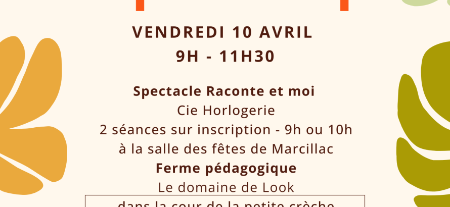Spectacle “Raconte et moi” proposé par la Cie Horlogerie, avec deux séances sur inscription à 9h et 10h, à la salle des fêtes de Marcillac.