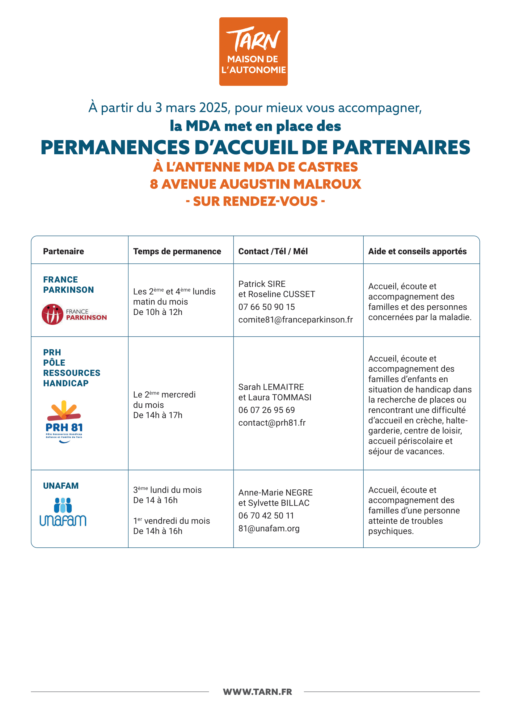 Voici le tableau récapitulant les jours et horaires de permanences ainsi que les contacts qui permettront la prise de rendez-vous 5 mars 2025