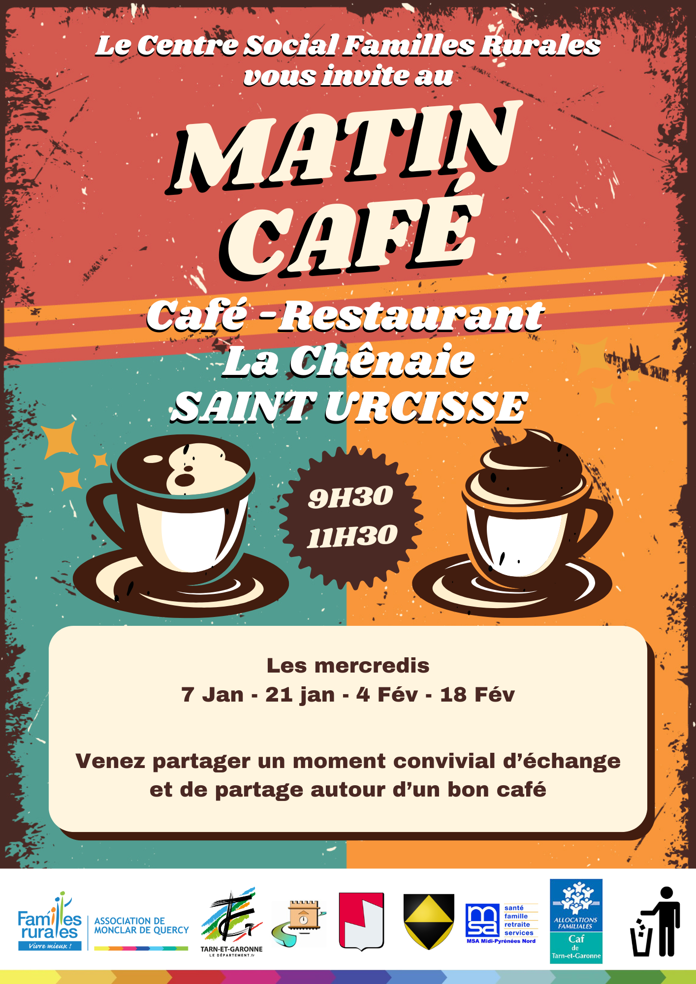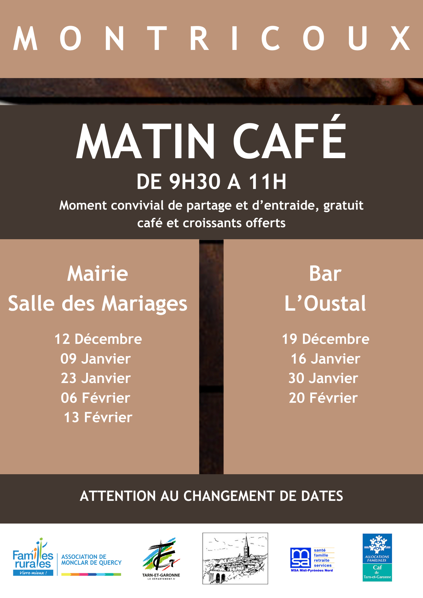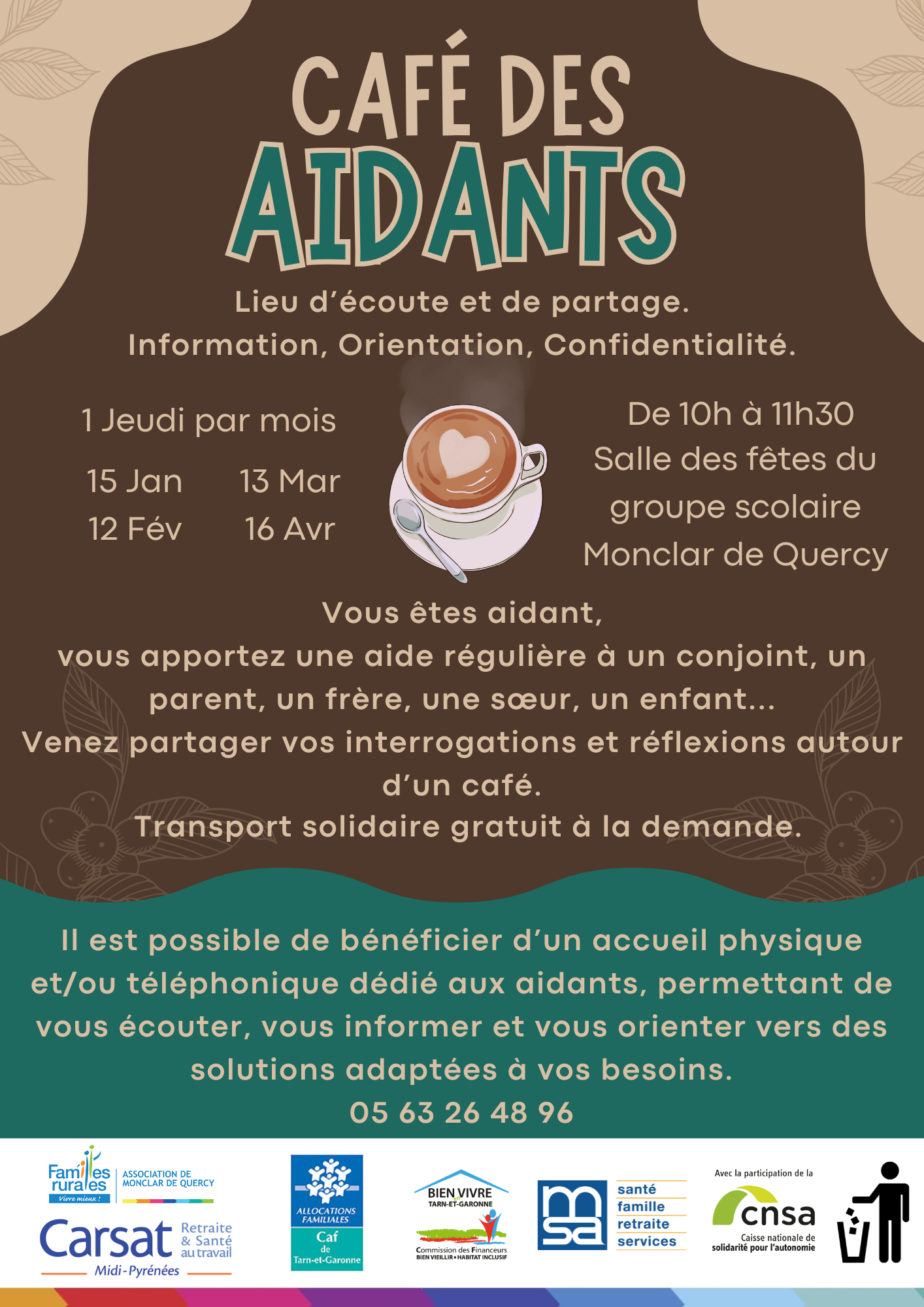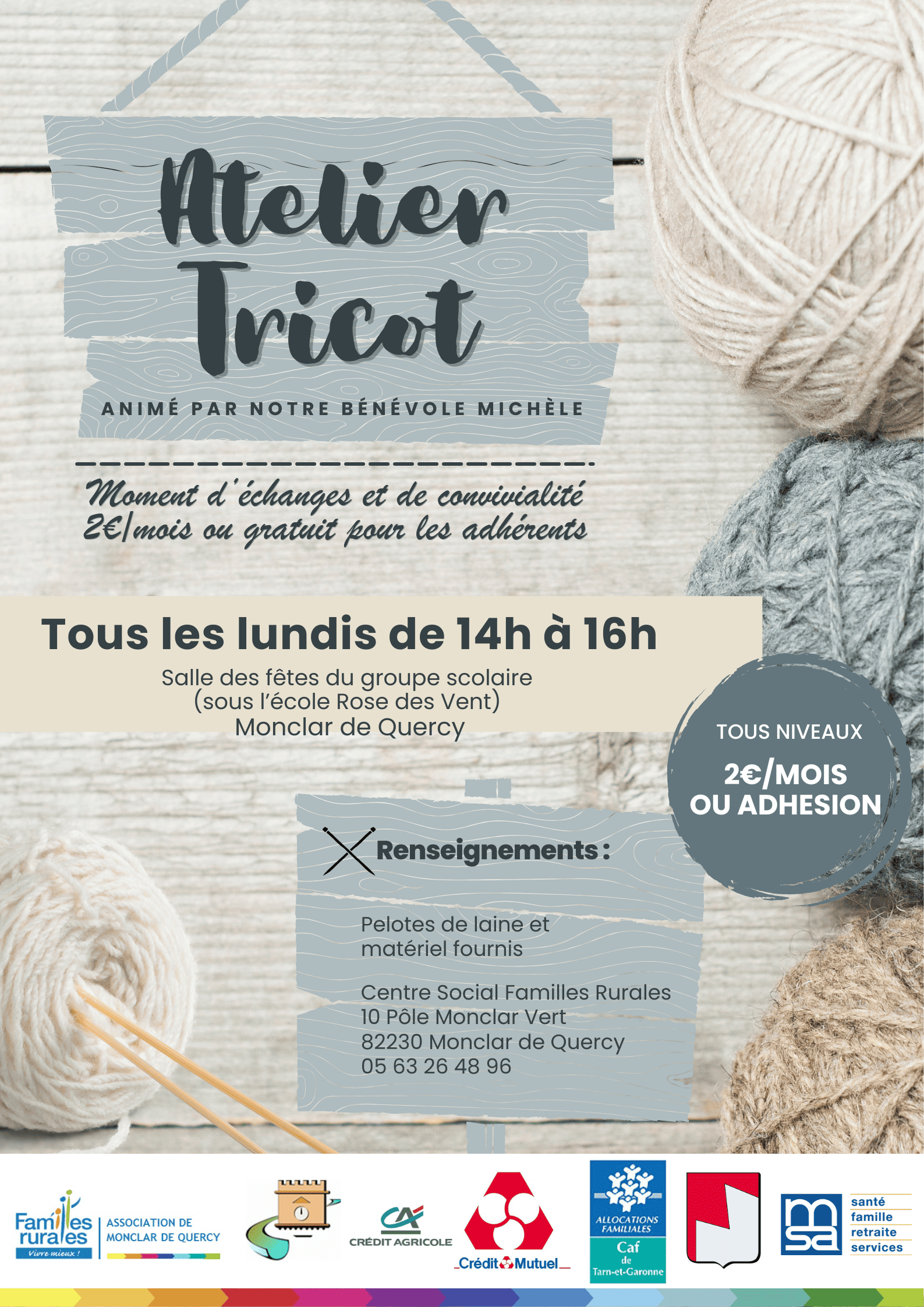 Atelier Cuisine Ateliers Initiation au Numérique Atelier Tricot Café des Aidants Cinéma Solidaire Matin Café Montricoux Matin Café Montdurausse Matin Café Saint Urcisse Matin Café Monclar de Quercy