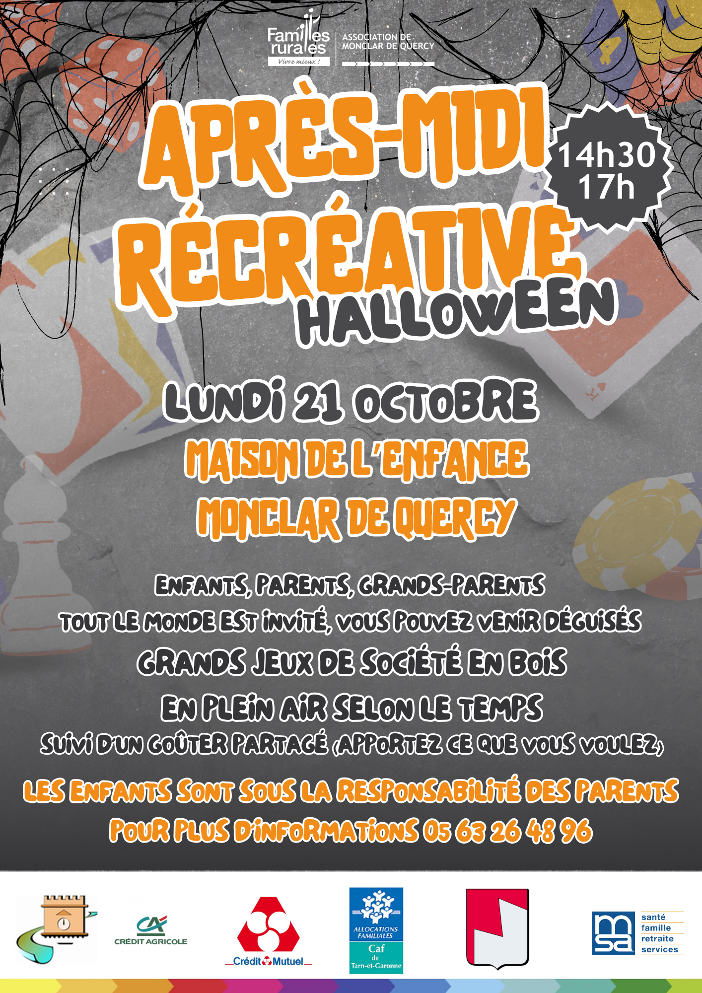 Le Centre Social Familles Rurales de Monclar de Quercy vous invite pour son après-midi récréative le 21 Octobre 2024.