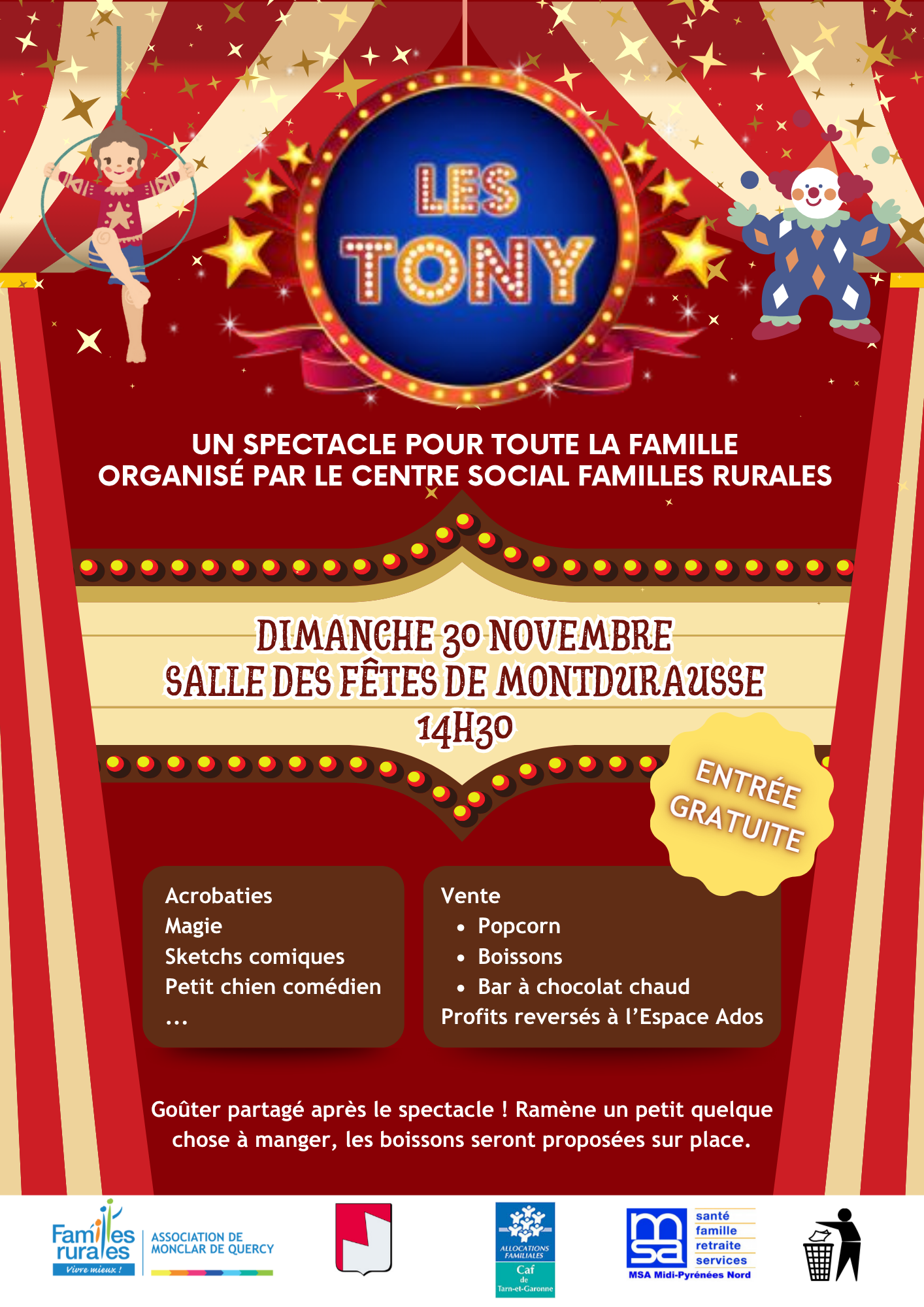 Un spectacle pour toute la famille organisé par le Centre Social Familles Rurales de Monclar de Quercy 18 novembre 2025