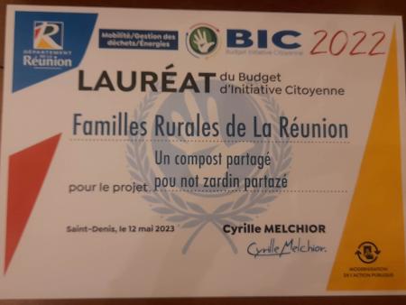 La Fédération Départementale Familles Rurales Réunion a été lauréat dans le cadre de son projet " Un compost partagé pou not zardin partazé" proposé par l'association Familles Rurales Poivre Et Sel.