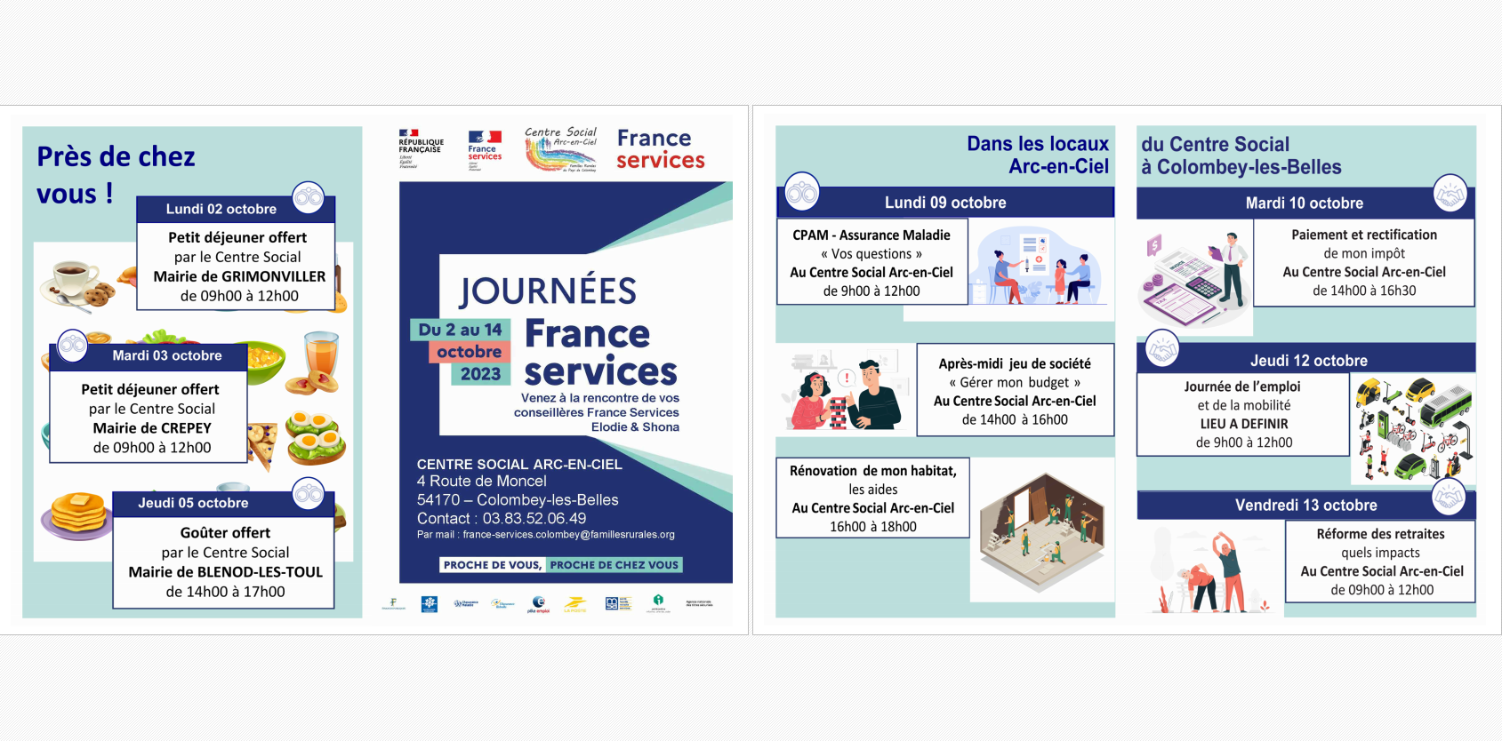 - Mardi 3 Octobre de 9h à 12h : salle de la mairie de Crepey, le Centre Social vient à vous avec le p'tit dej'