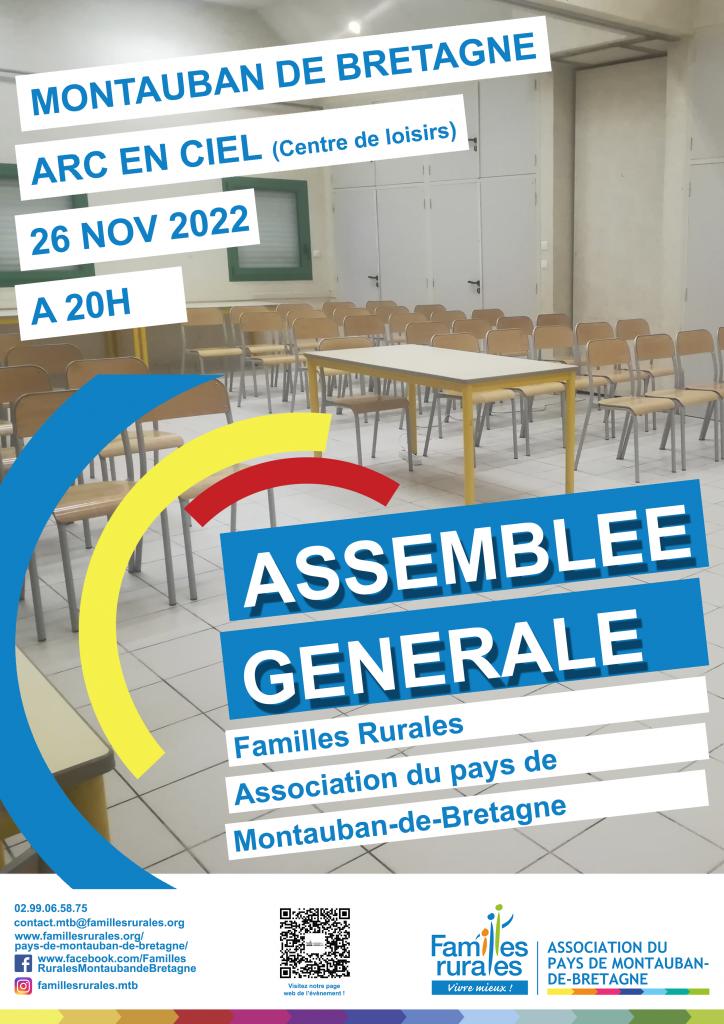 Nous vous invitons à l'assemblée générale pour l'année 2021-2022. 25 novembre 2022 Vendredi 25 novembre 2022 à 20h L'arc en ciel (accueil de loisirs) de Montauban-de-Bretagne