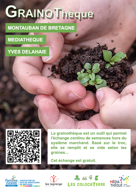 Les associations Familles Rurales du Pays de Montauban-de-Bretagne, Léo Lagrange, Les Colocaterres et la Médiathèques Yves Delahaie vous propose une grainothèque depuis le 6 avril 2022.