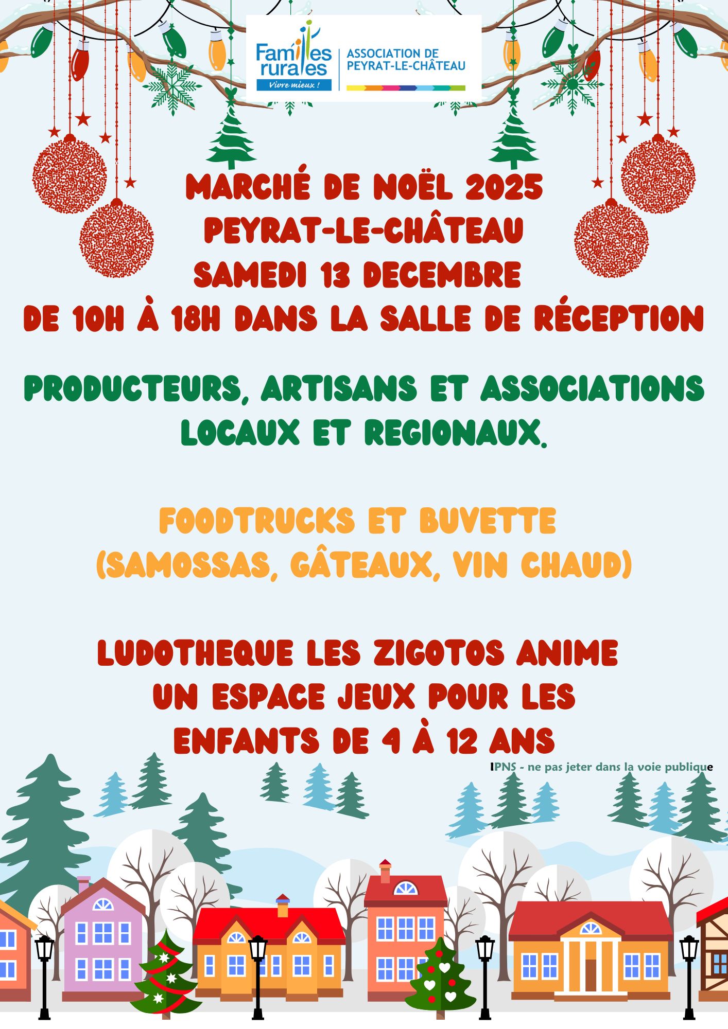 Familles Rurales de Peyrat-le-Château organise, pour la cinquième fois, le Marché de Noël à Peyrat-le-Château.