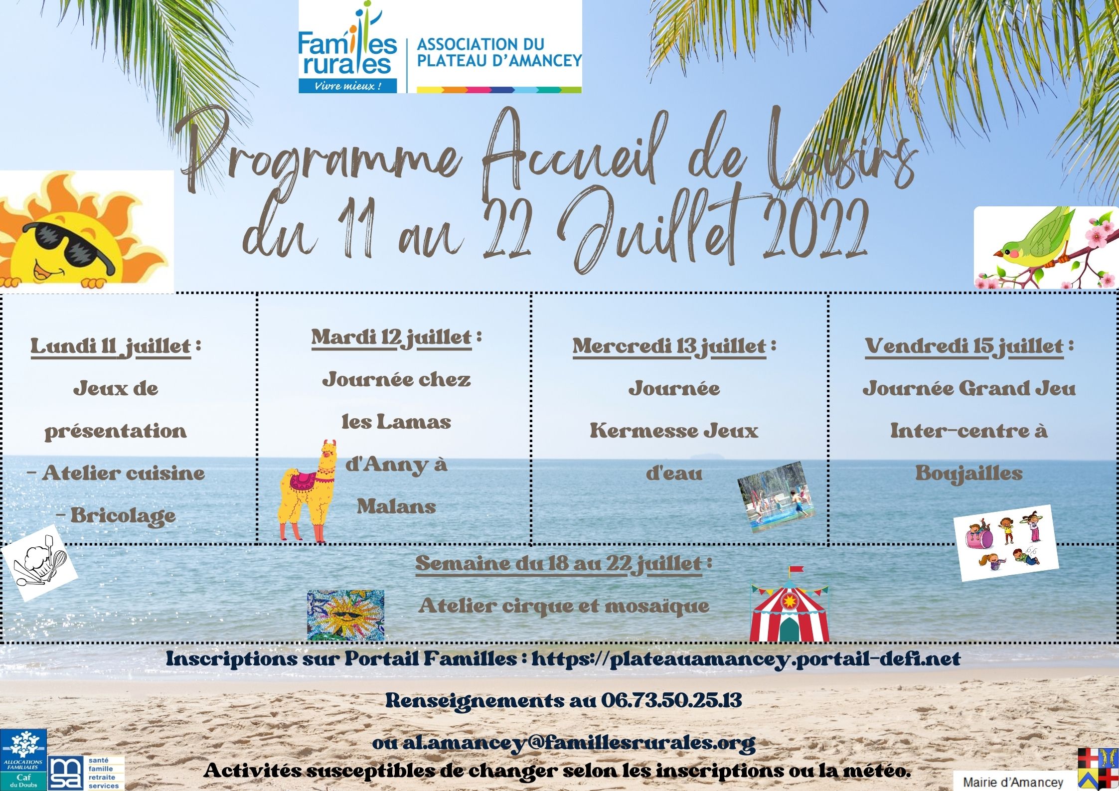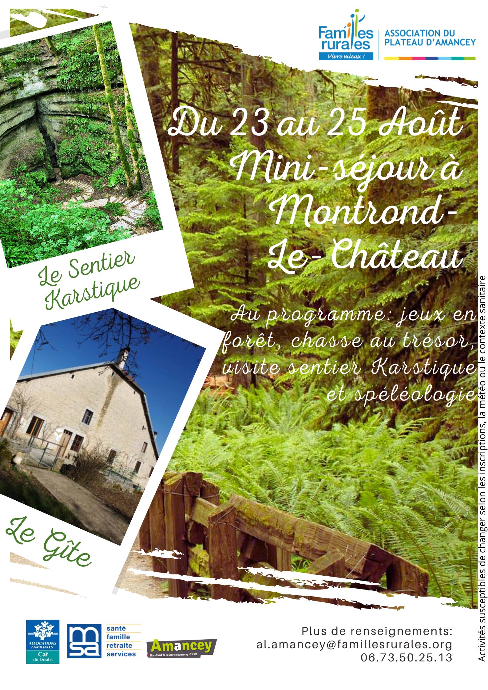 Les familles s'inscrivent par mail: al.amancey@famillesrurales.org . Pour une inscription avec l'accueil de loisirs vous pouvez utiliser le Portail familles.