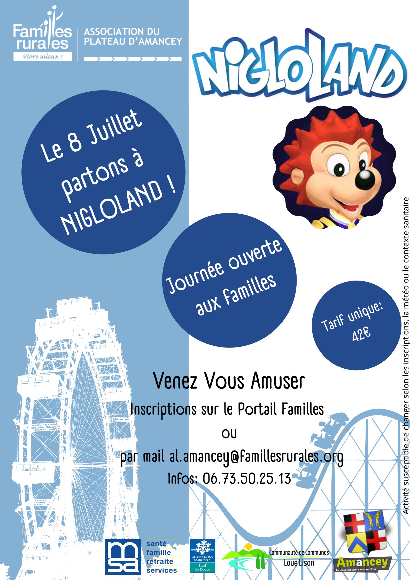 Journée Nigloland le 8 juillet. La journée est ouverte aux enfants avec l'accueil de loisirs et ouverte aux familles.