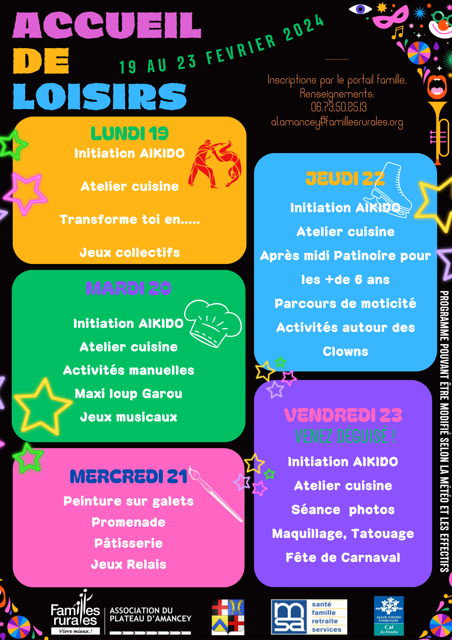 Du 19 au 23 février 2024, nous vous proposons de nombreuses activités !