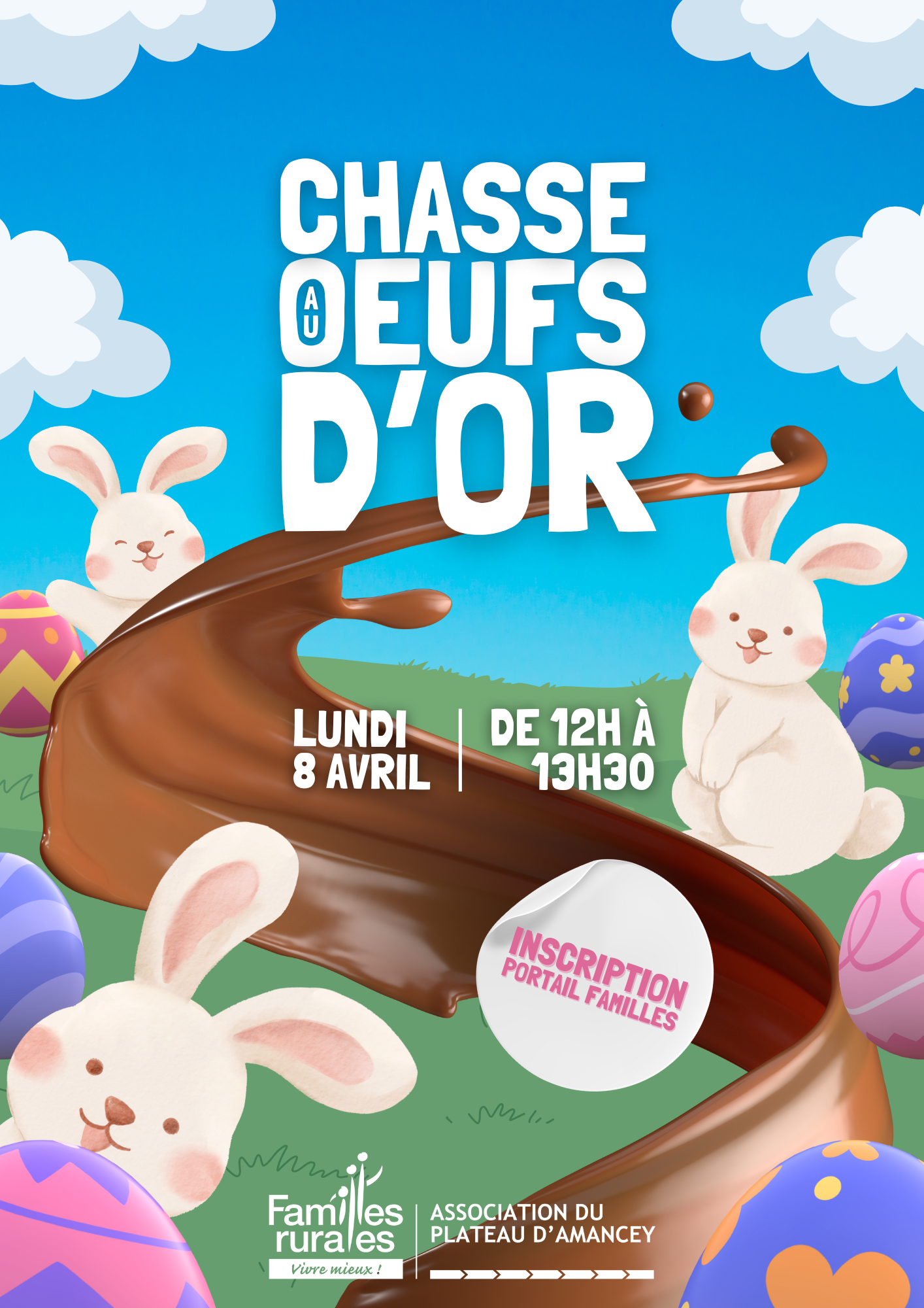 Nous avons le plaisir de vous annoncer que notre Grand Jeu pour Pâques aura lieu le lundi 8 avril prochain, durant le temps méridien, à l'accueil de loisirs d'Amancey