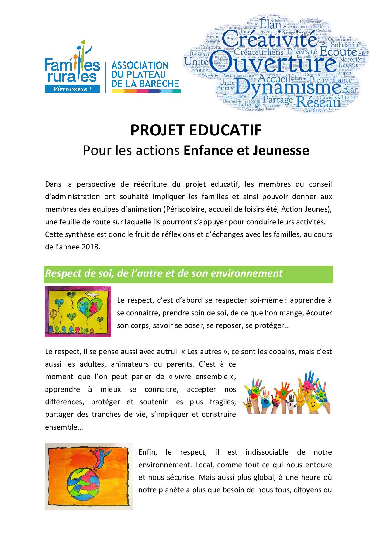 [Projet educatif pour les actions Enfance et Jeunesse]