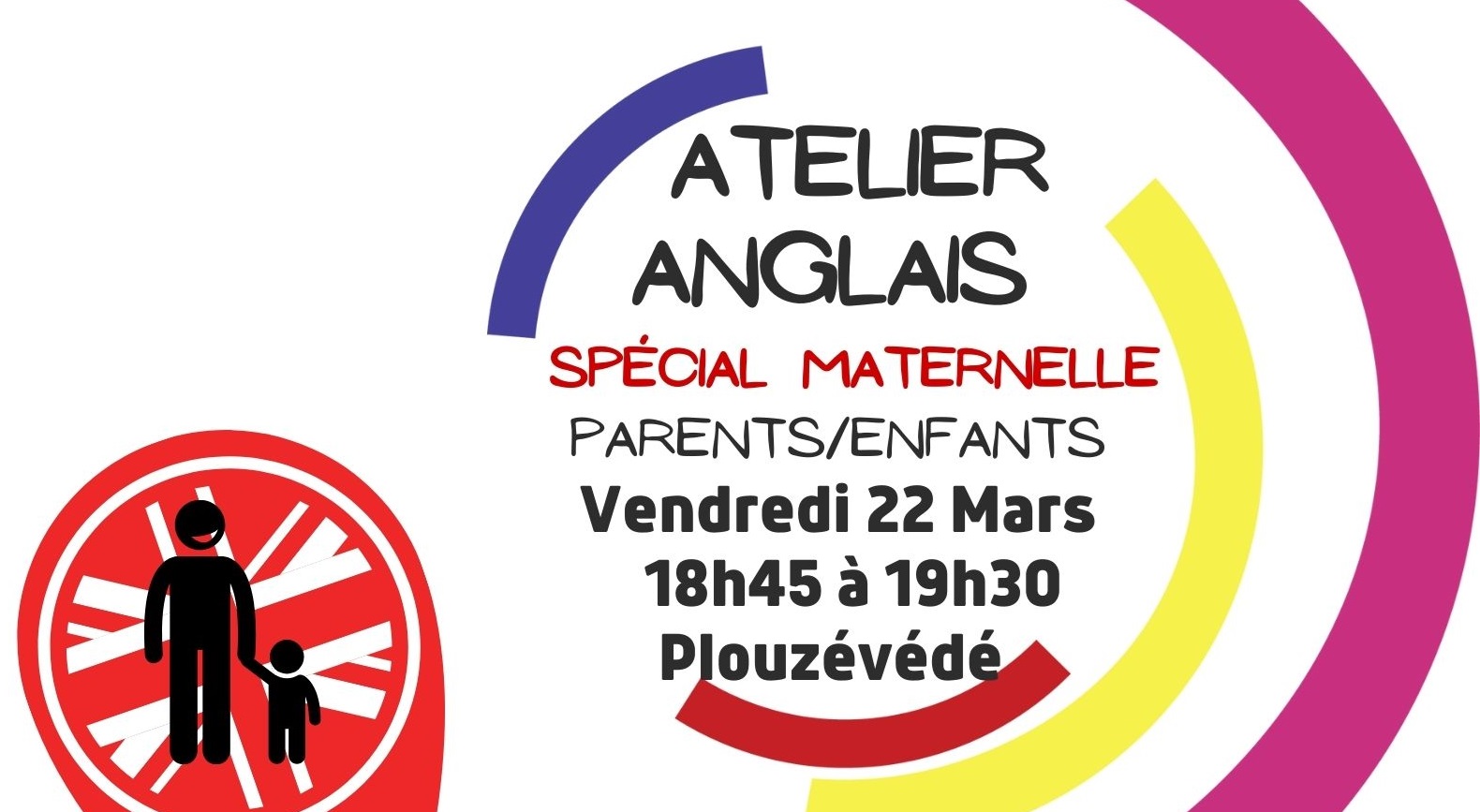 Le prochain atelier d'initiation à l'anglais aura lieu le vendredi 22 mars, de 18h45 à 19h30, au Pôle enfance de Plouzévédé et il s'adresse aux parents et aux enfants de 2 à 5 ans (maternelle).
