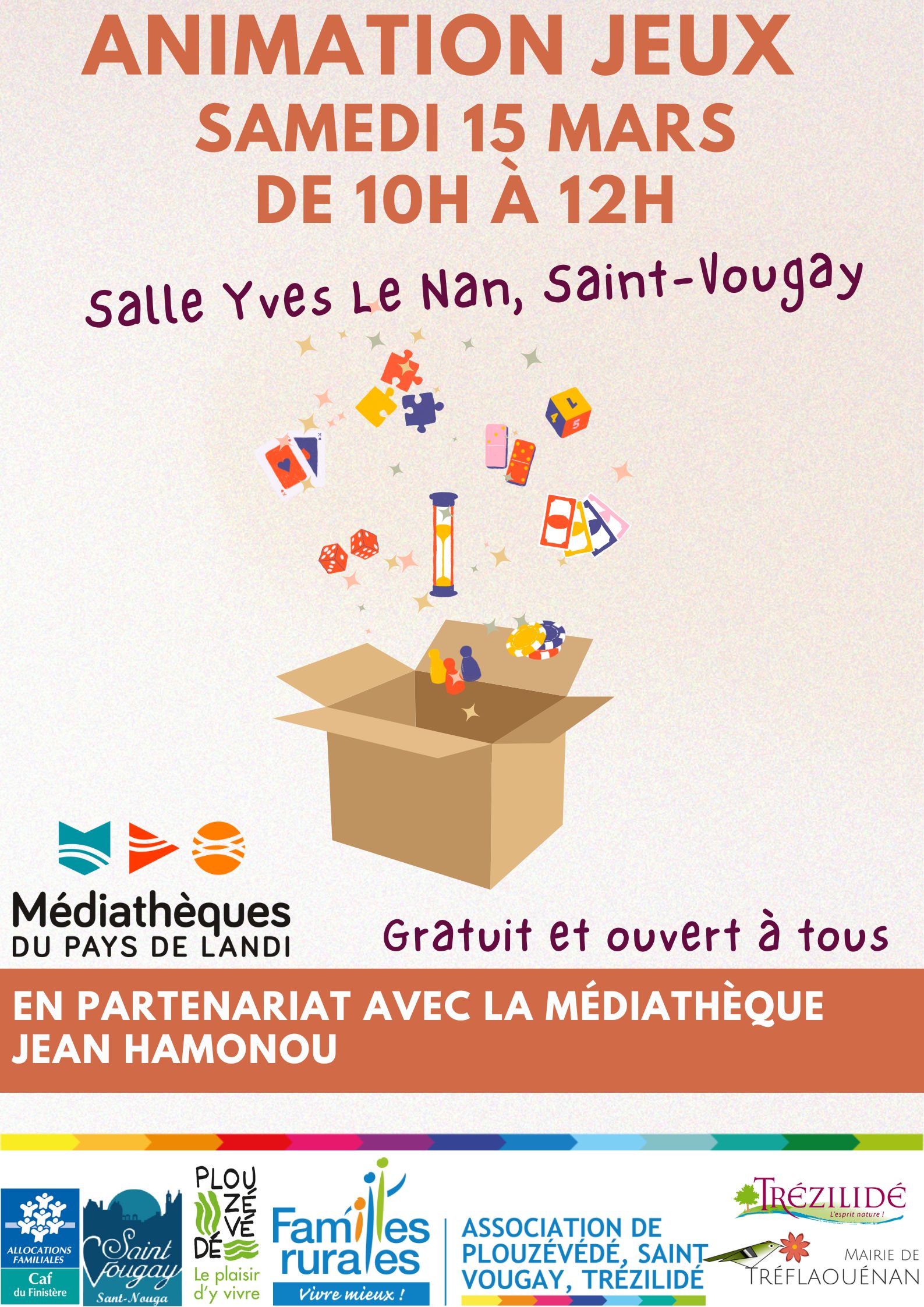 Animation jeux, samedi 15 mars, en partenariat avec la médiathèque Jean Hamonou, à la salle Yves Le Nan.