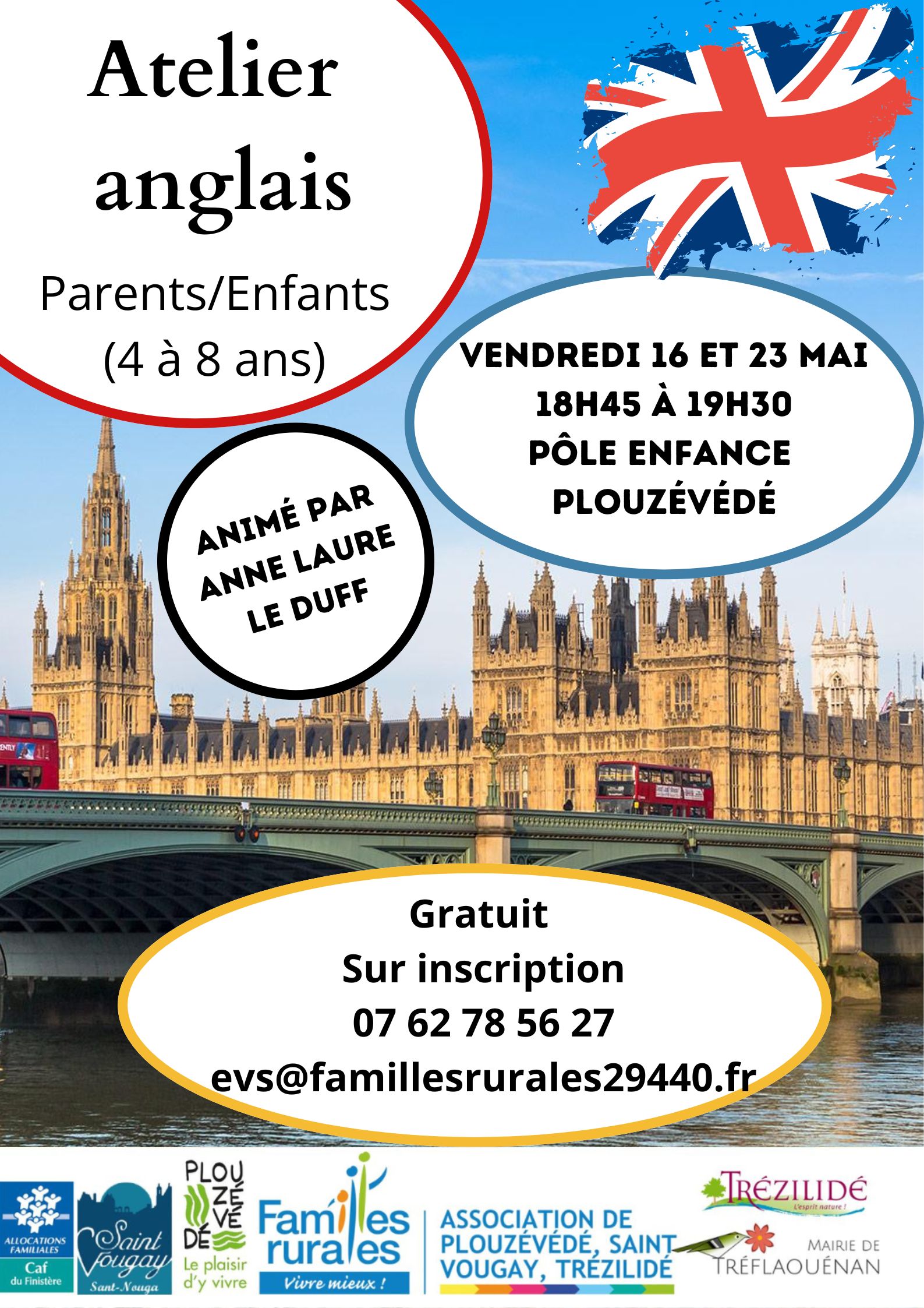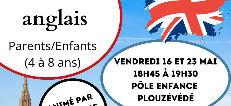 Les prochains ateliers d'initiation à l'anglais auront lieu les vendredis 16 et 23 mai de 18h45 à 19h30, au Pôle enfance de Plouzévédé.