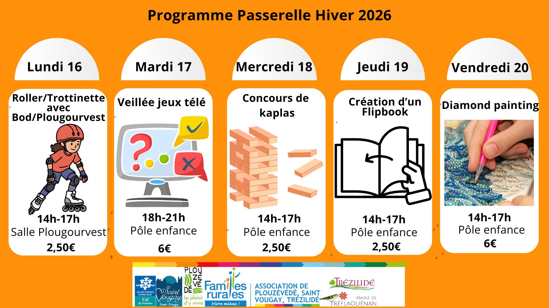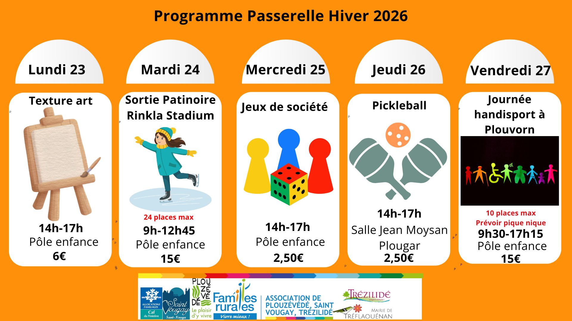Vous trouverez ci-dessous le programme des 2 semaines d'activités pour les passerelles. Du 16/02/2026 au 27/02/2026