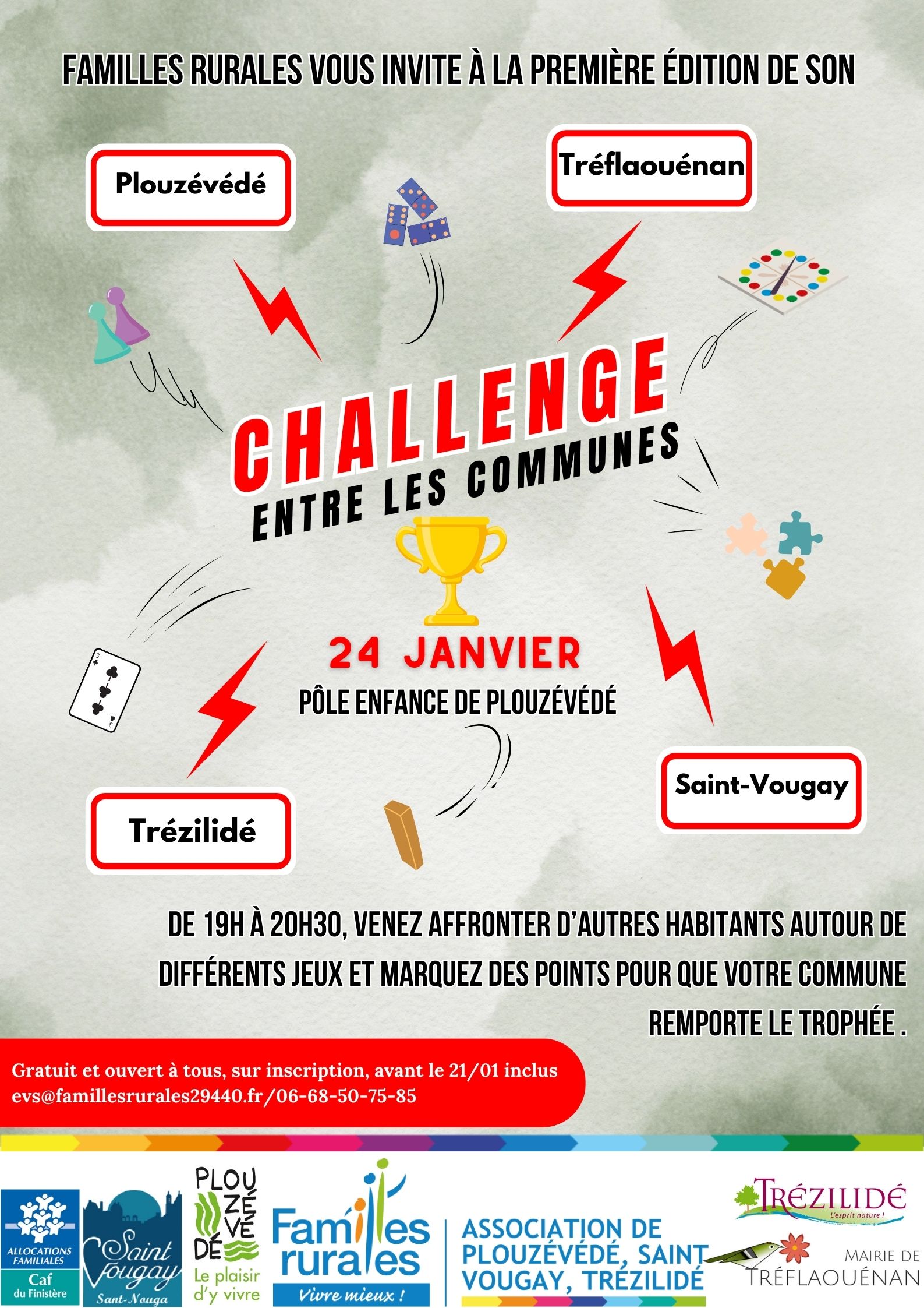 De 19h à 20h30 au pôle enfance de Plouzévédé, venez affronter d’autres habitants autour de différents jeux et marquez des points pour que votre commune remporte le trophée.