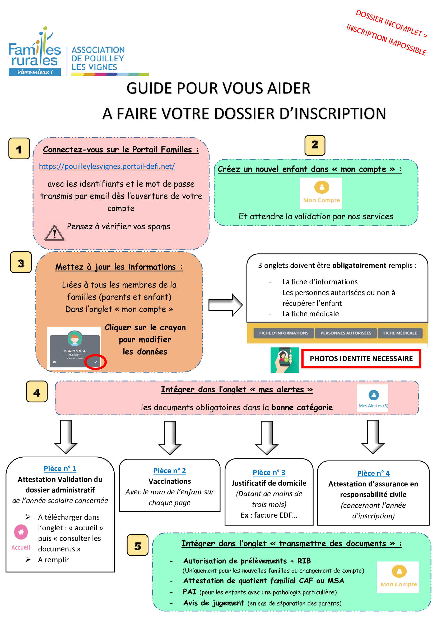 Tout dossier non complet ne vous permettra pas d'inscrire vos enfants