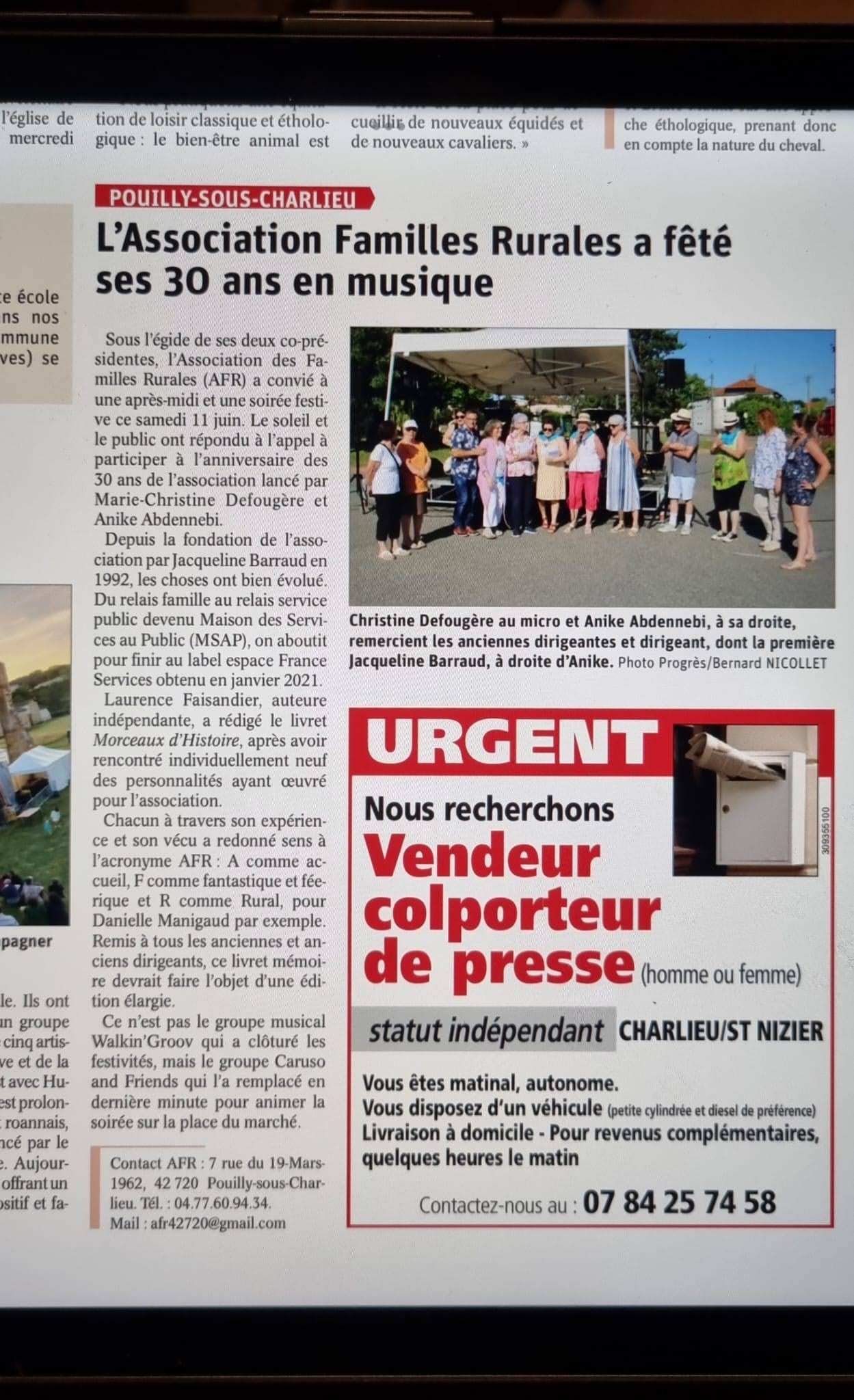 Le 11 juin 2022, nous avons fêté les 30 ans de notre association. Laurence nous a fait le plaisir de recueillir les témoignages de nos pionnières et fondatrices de l'AFR de Pouilly sous Charlieu.