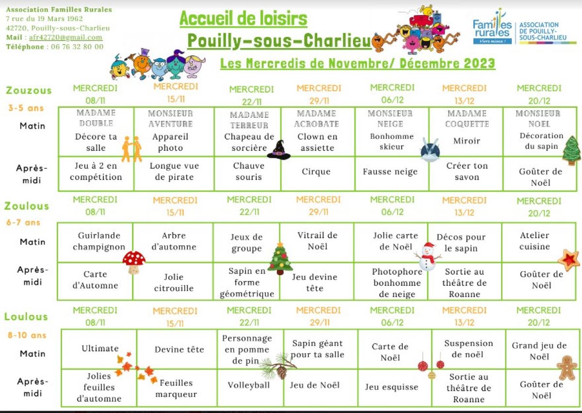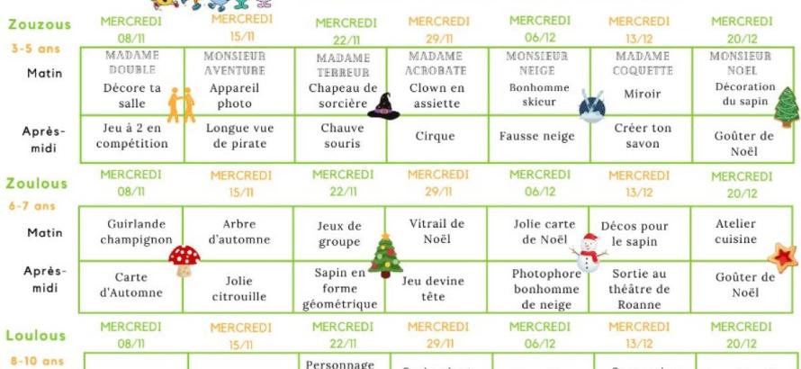 Accueil de loisirs: les mercredis de novembre et Décembre 2023