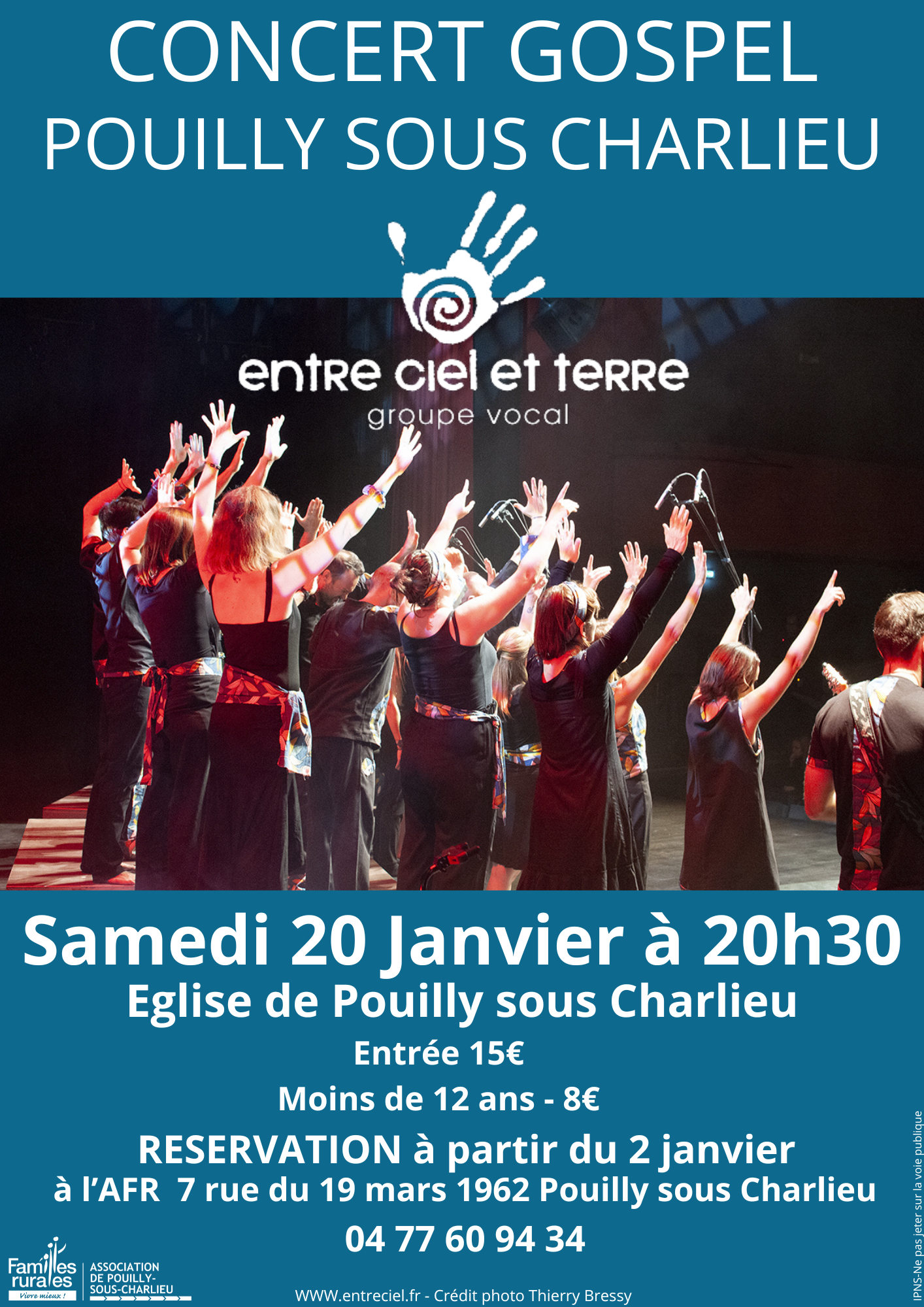 Nous avons plaisir de recevoir le Groupe Vocal "Entre ciel et Terre" qui nous enchantera avec leur répertoire de Gospel en l'église de Pouilly sous Charlieu le 20 janvier 2024 à 20h30.