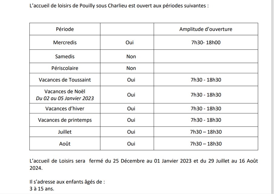 En complément de la participation des familles, la Caisse d’Allocations Familiales, la communauté de communes de Charlieu Belmont et la Mairie de Pouilly sous Charlieu soutiennent le fonctionnement de notre accueil de loisirs.