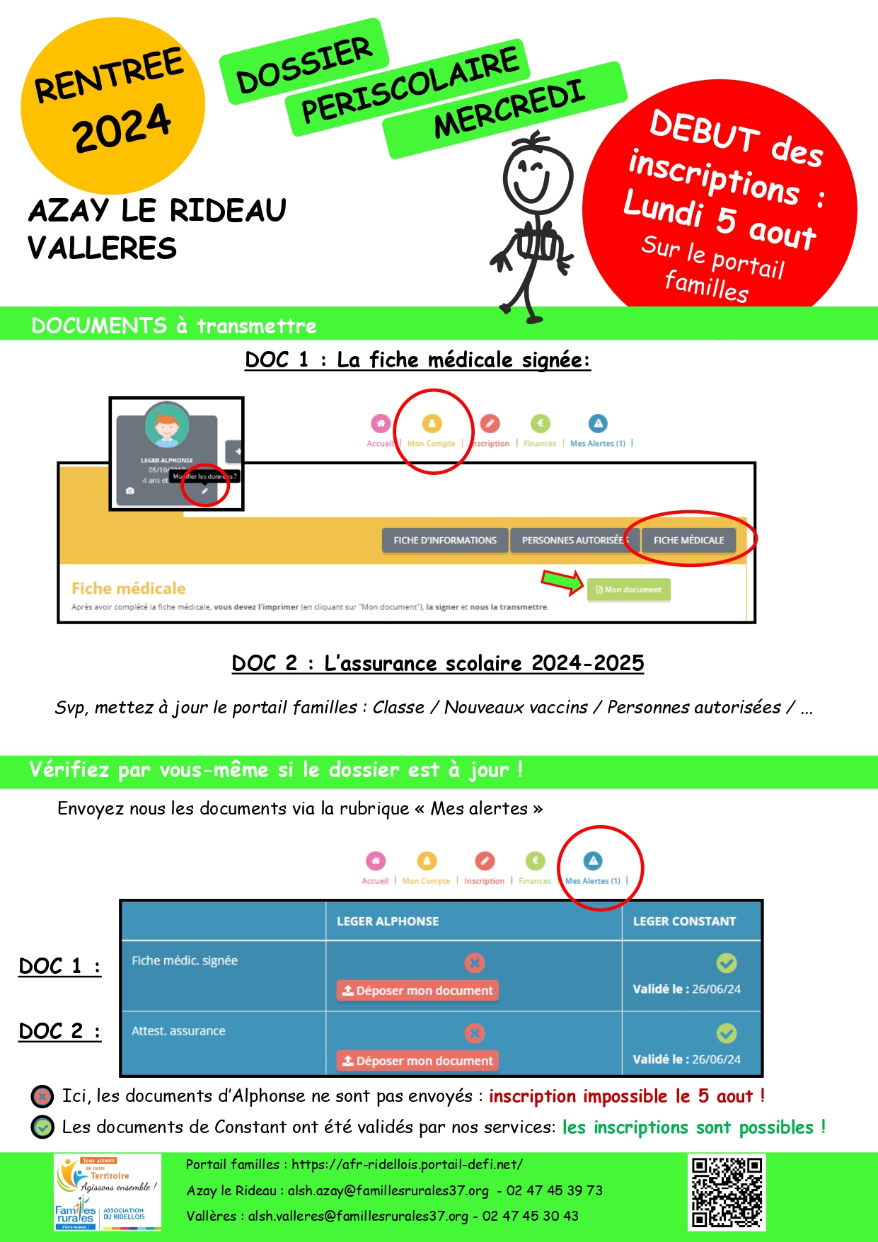 Règlement intérieur et modalités d'inscription disponibles sur le : Site Familles Rurales ou portail familles