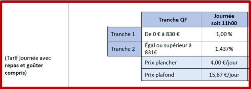 Inscription définitive. Inscription à la journée avec repas. Pas de minimum de jour par semaine.