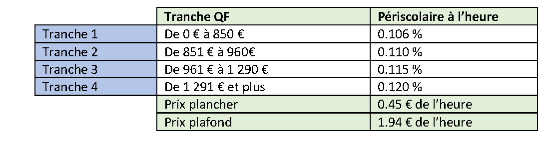 TARIFS APPLICABLES A PARTIR DU 1ER SEPTEMBRE 2024 :