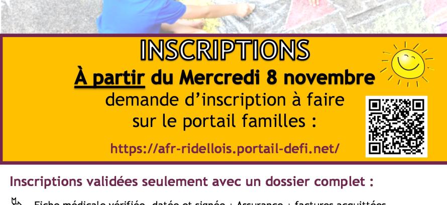 Pour rappel : Dossier complet = Fiche médicale vérifiée, datée et signée + Assurance + factures acquittées