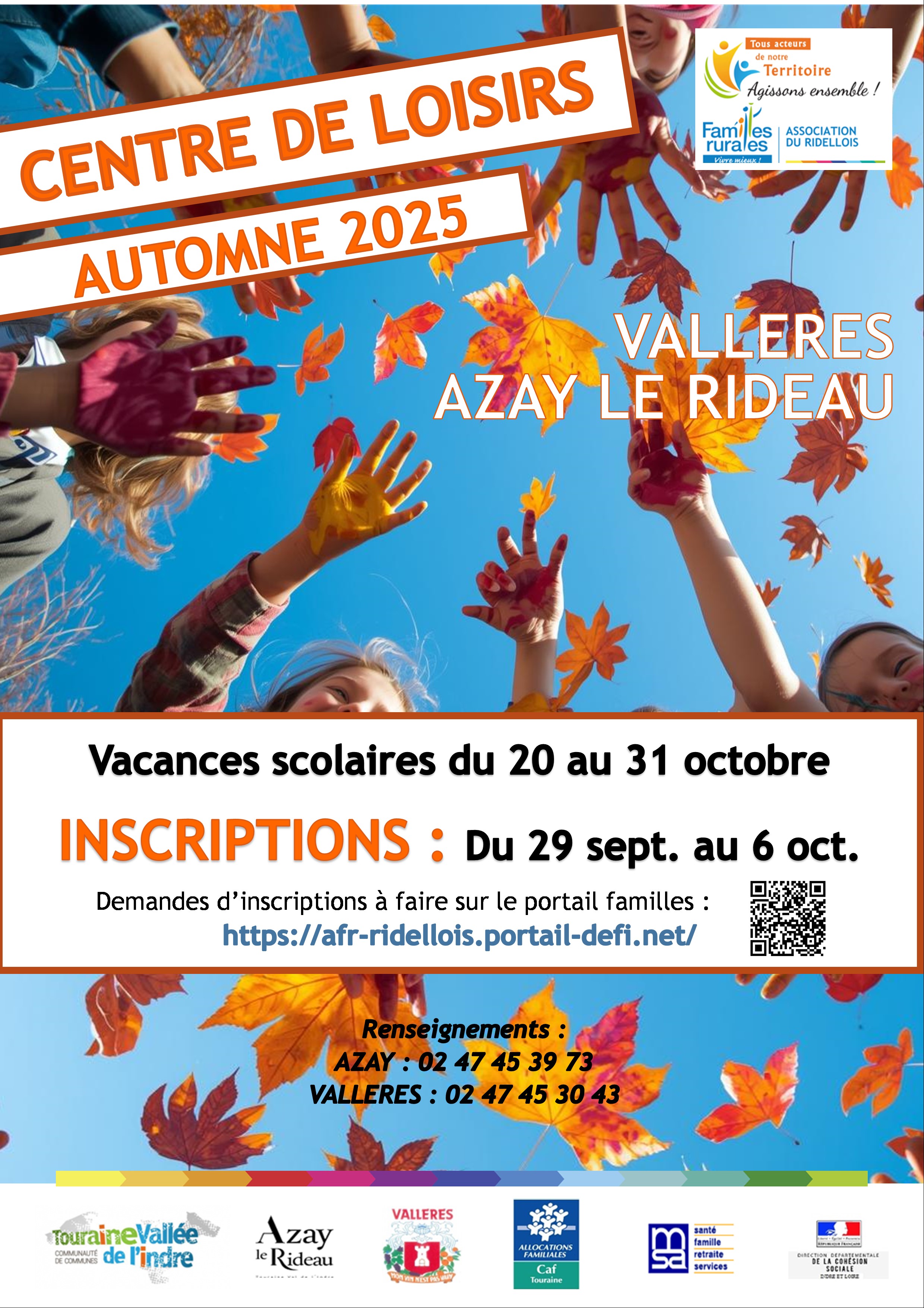 Les centres de loisirs d'Azay le Rideau et de Vallères seront ouverts :